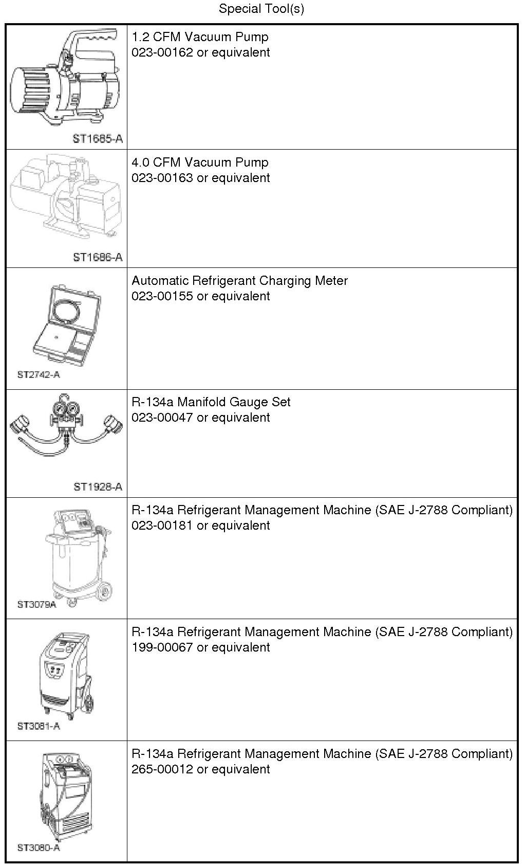 NOTE: Ford Motor Company recommends the use of R-134a refrigerant management equipment that meets the requirements of the SAE J2788 standard.