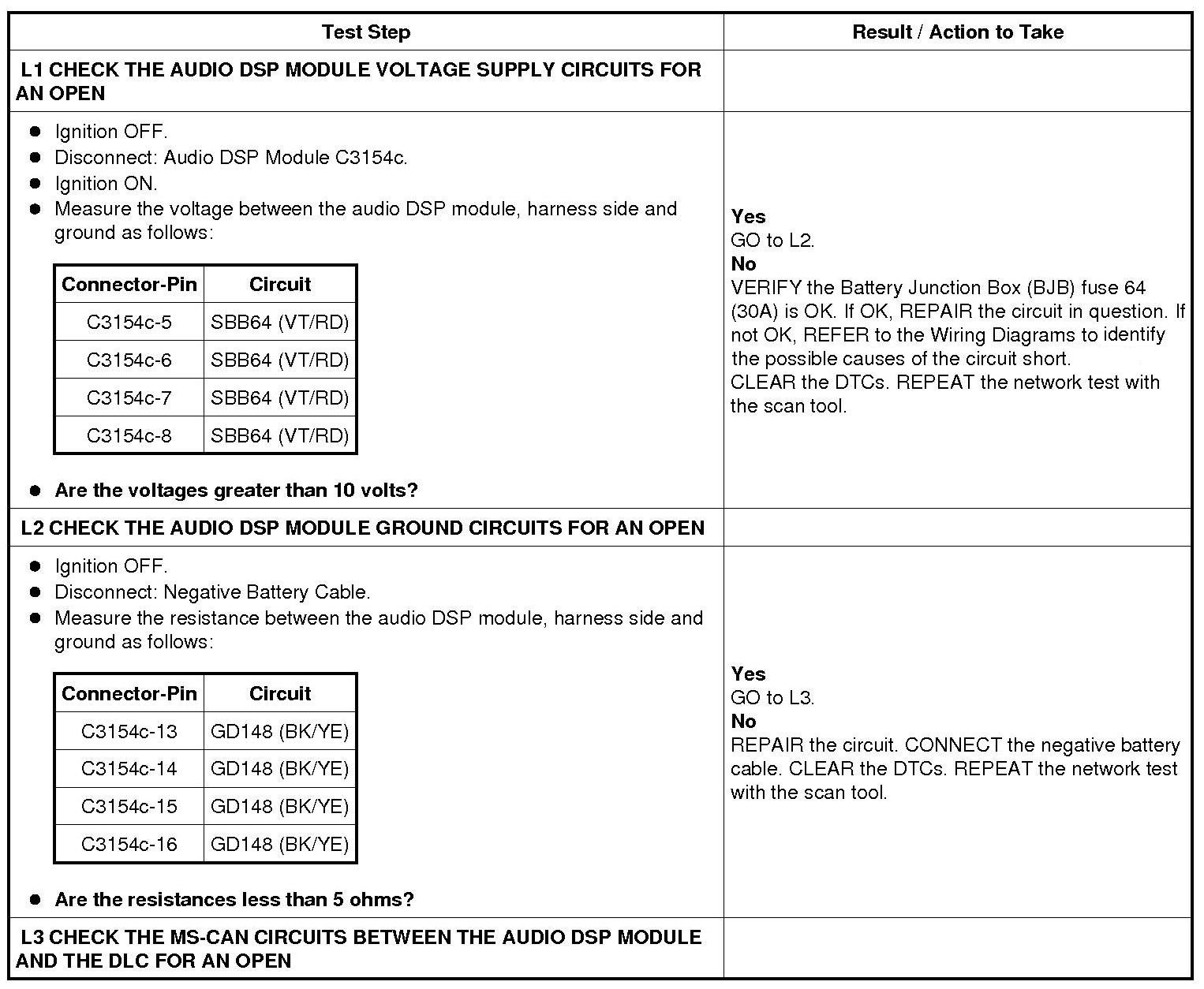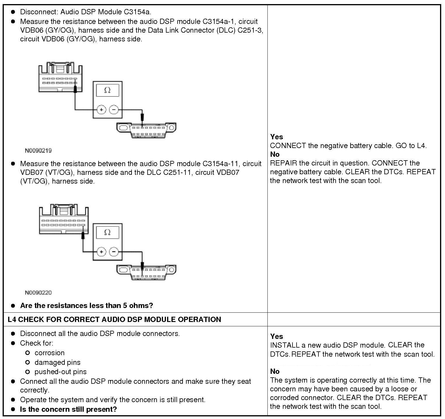 Pinpoint Test L: The Audio Digital Signal Processing (DSP) Module Does Not Respond To The Scan Tool