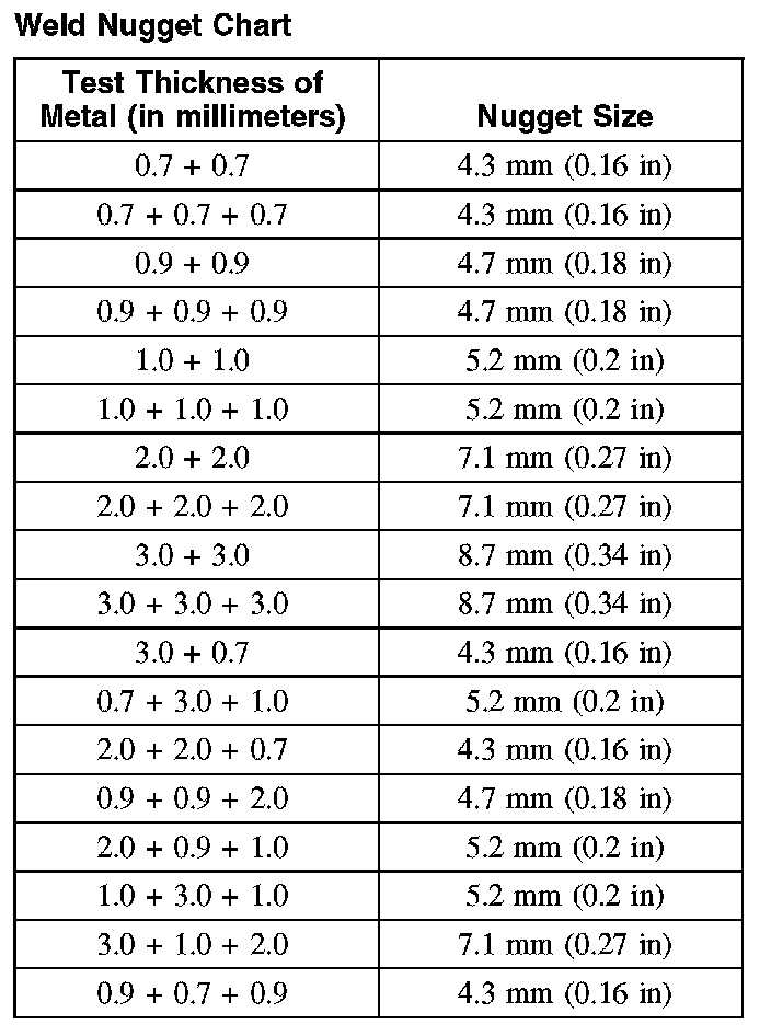 Weld Nugget Chart: