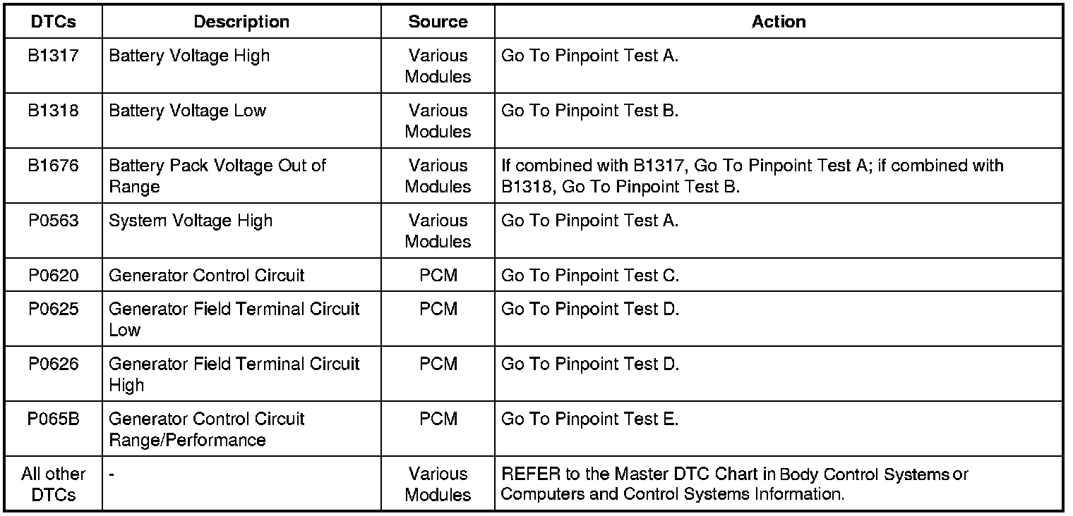 Diagnostic Trouble Code (DTC) Chart