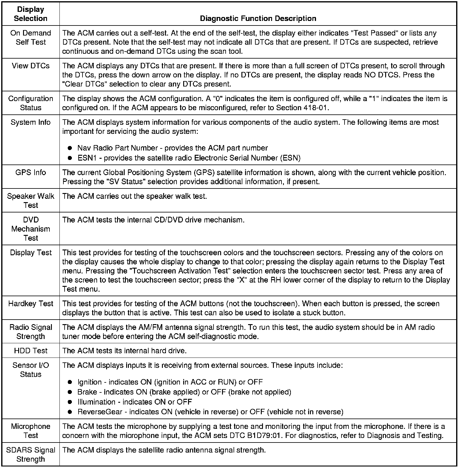 Audio Control Module (ACM) Self-Diagnostic Mode