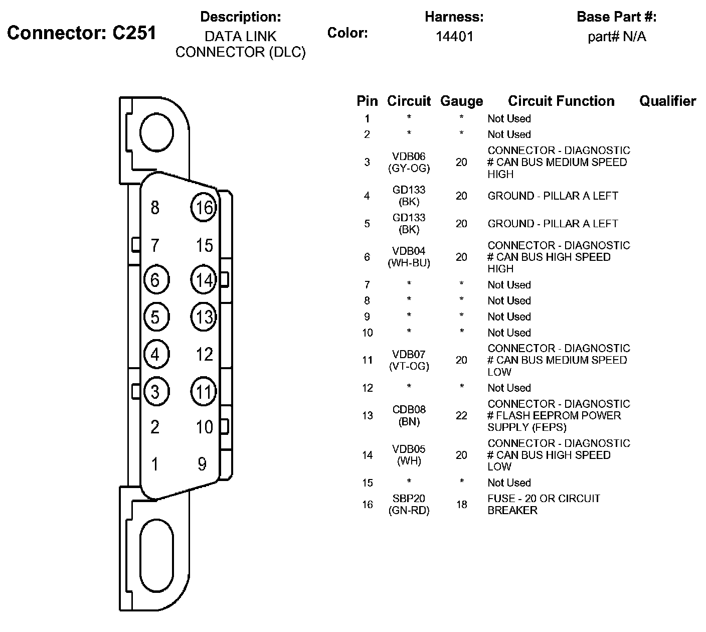 Data Link Connector: Diagrams