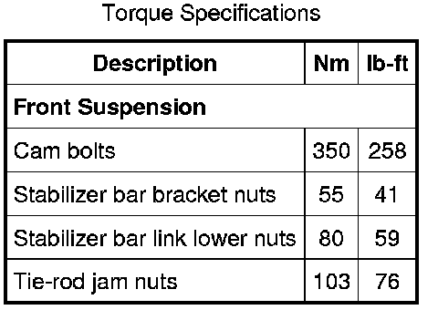 Torque Specifications: