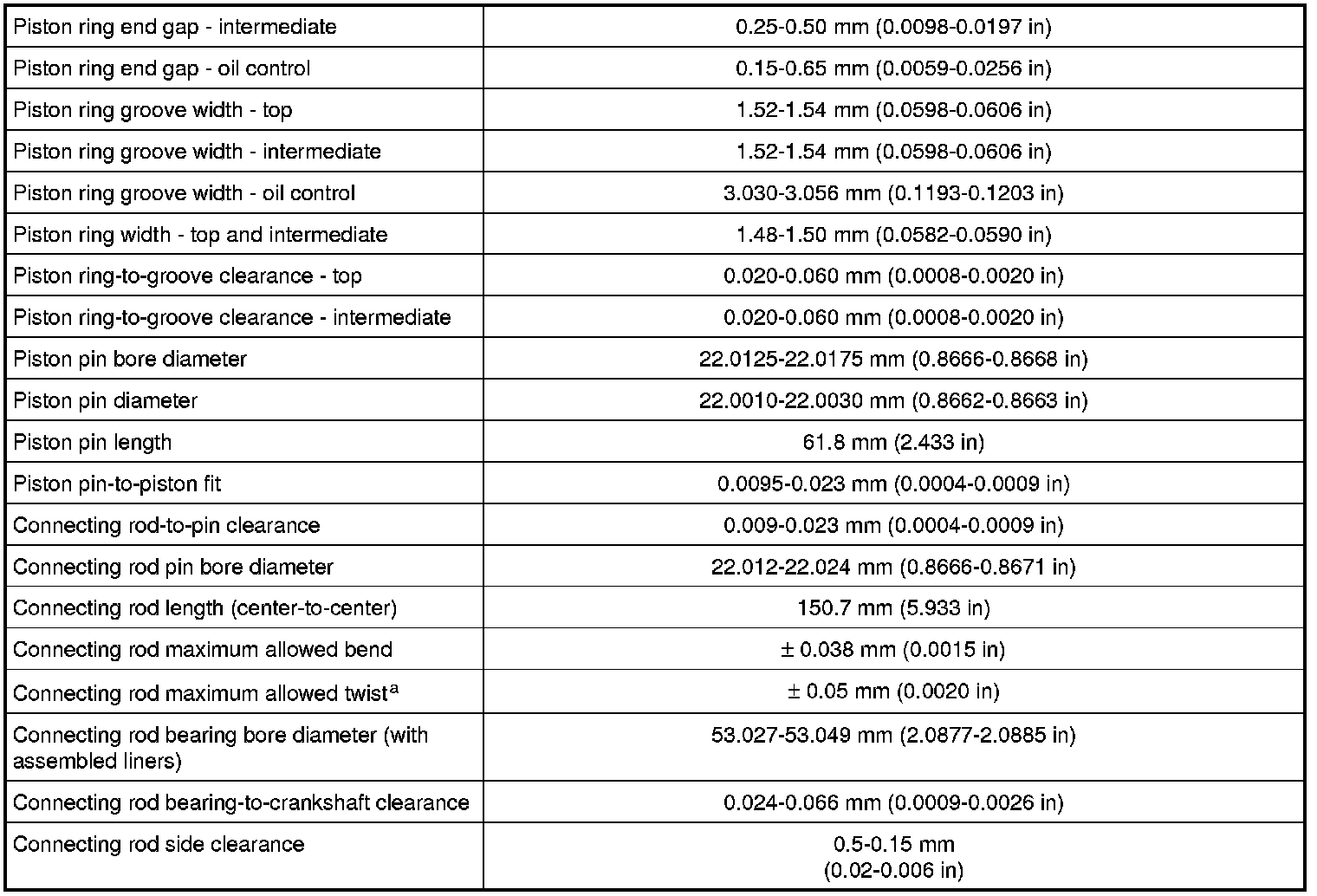 a The pin bore and crank bearing bore must be parallel and in the same vertical plane within the specified total difference when measured at the ends of a 203 mm bar, 105.5 mm on each side of rod centerline.