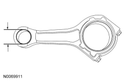 3. Use a telescoping gauge and a 25-50 mm (1-2 in) micrometer to measure the inside diameter of the piston pin bushing. Install a new connecting rod if not within specifications. For additional information, refer to Specifications.