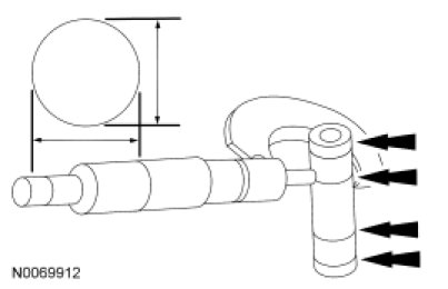 4. Measure the piston pin diameter in 2 directions at the points shown. Verify the diameter is within specification. For additional information, refer to Specifications.