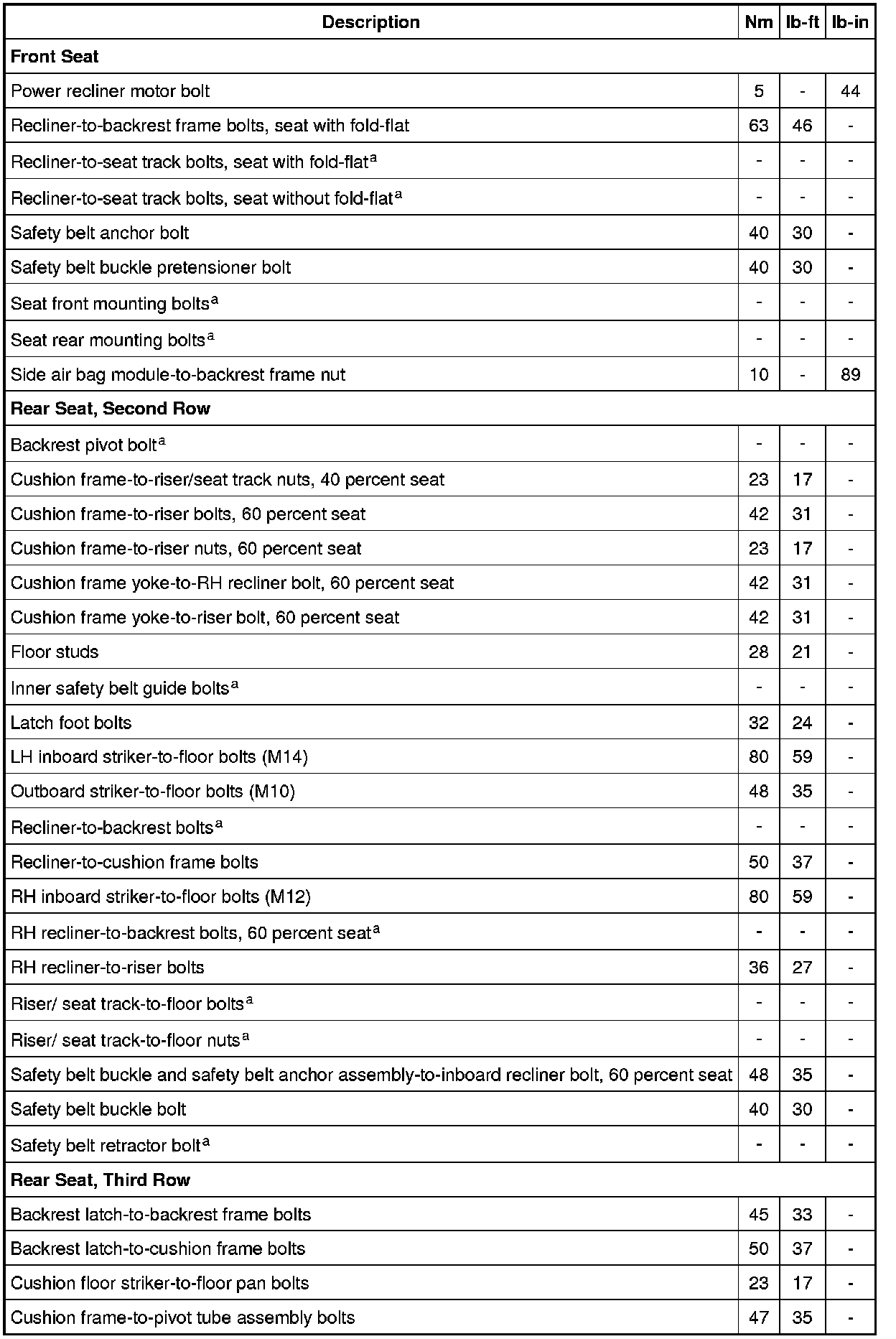 Torque Specifications