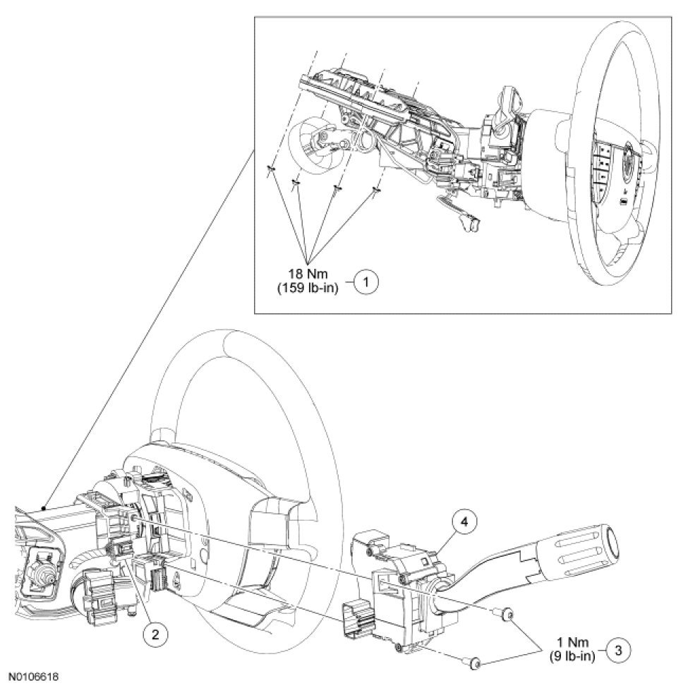 1. Remove the steering column shrouds. For additional information, refer to Steering Column.