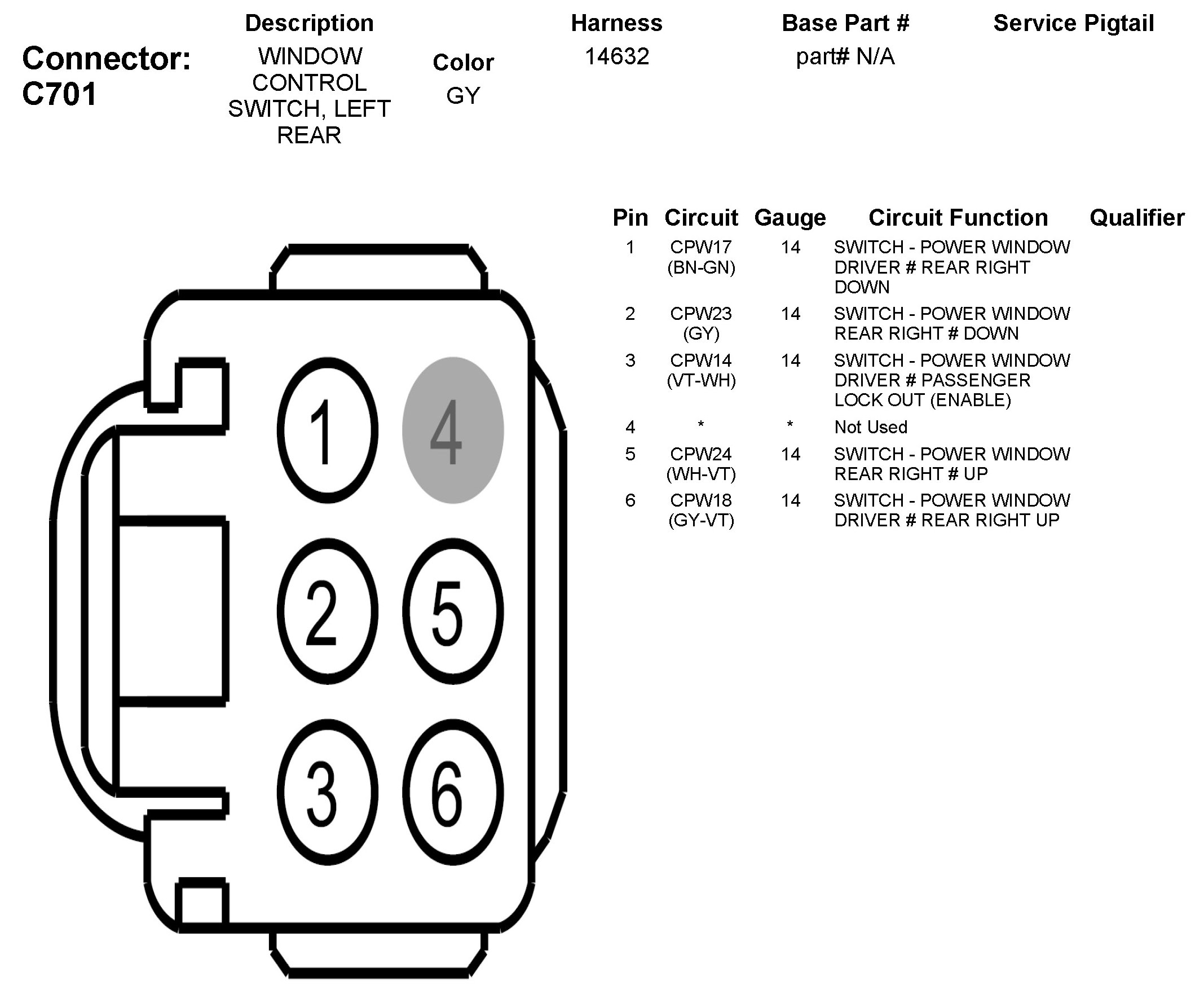 C701 Window Control Switch, Left Rear