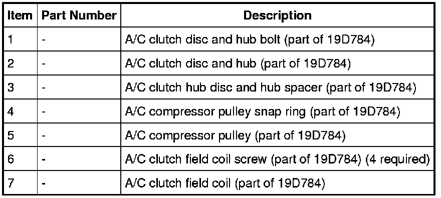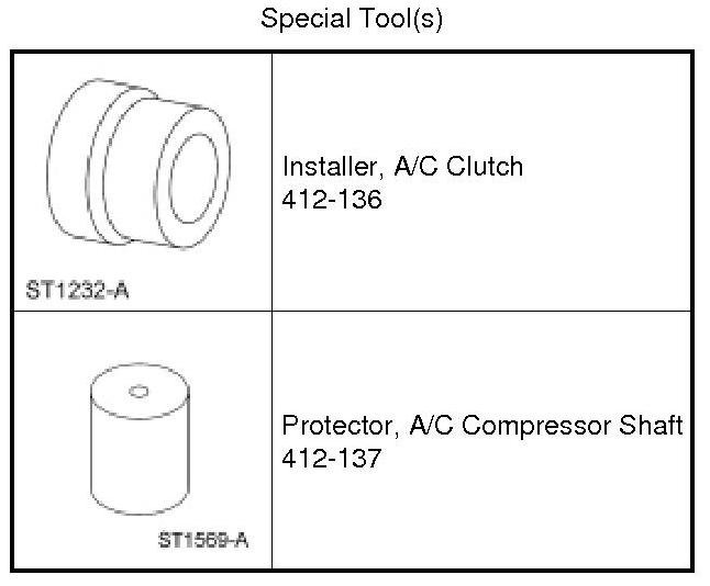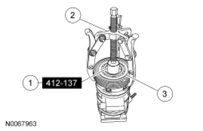 1. Remove the A/C compressor. For additional information, refer to Air Conditioning (A/C) Compressor - 2.5L Service and Repair or Air Conditioning (A/C) Compressor - 3.0L (4V) Service and Repair.