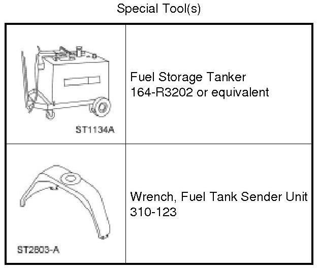 Connect the Fuel Storage Tanker hose to the fuel tank filler pipe recirculation tube port on the FP module and remove approximately one-fourth of the fuel from a completely full tank (approximately 4 gallons), lowering the fuel level below the FP module mounting flange.