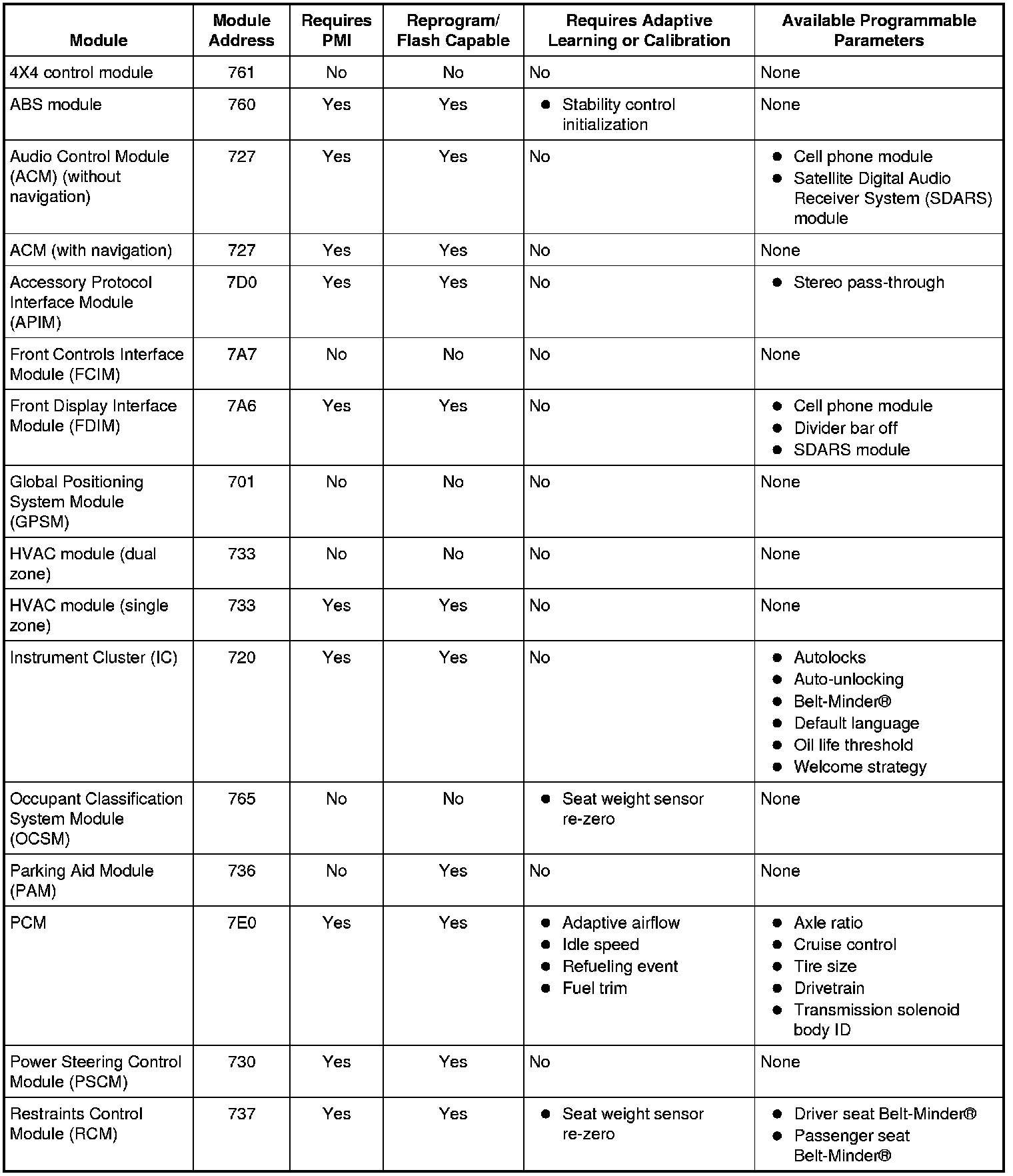 PMI is a scan tool process which configures settings in a new module. Data used for the PMI process is automatically downloaded from the original module and stored when a scan tool session is started. If this data cannot be retrieved from the module being replaced, the scan tool may prompt for As-Built data entry or display a list of parameter values that need to be manually selected. Some modules are reprogrammed during PMI when a strategy/calibration update is available. To carry out PMI, refer to Programmable Module Installation (PMI) Programmable Module Installation (PMI).