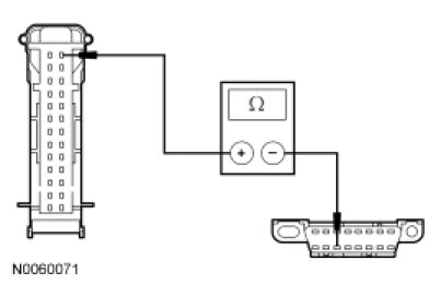 - Measure the resistance between the HVAC module C2356a-25 or C2357a-25, circuit VDB06 (GY/OG), harness side and the Data Link Connector (DLC) C251-3, circuit VDB06 (GY/OG), harness side.