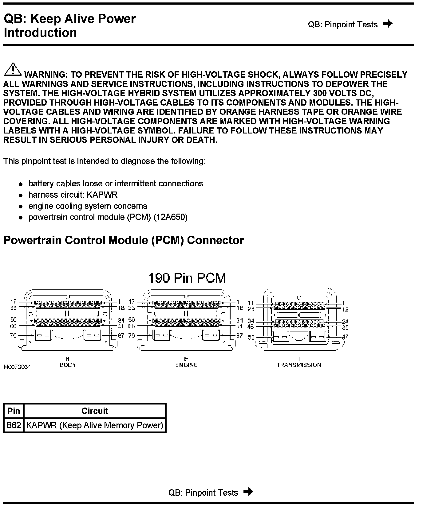 Warning And Powertrain Control Module (PCM) Connector: