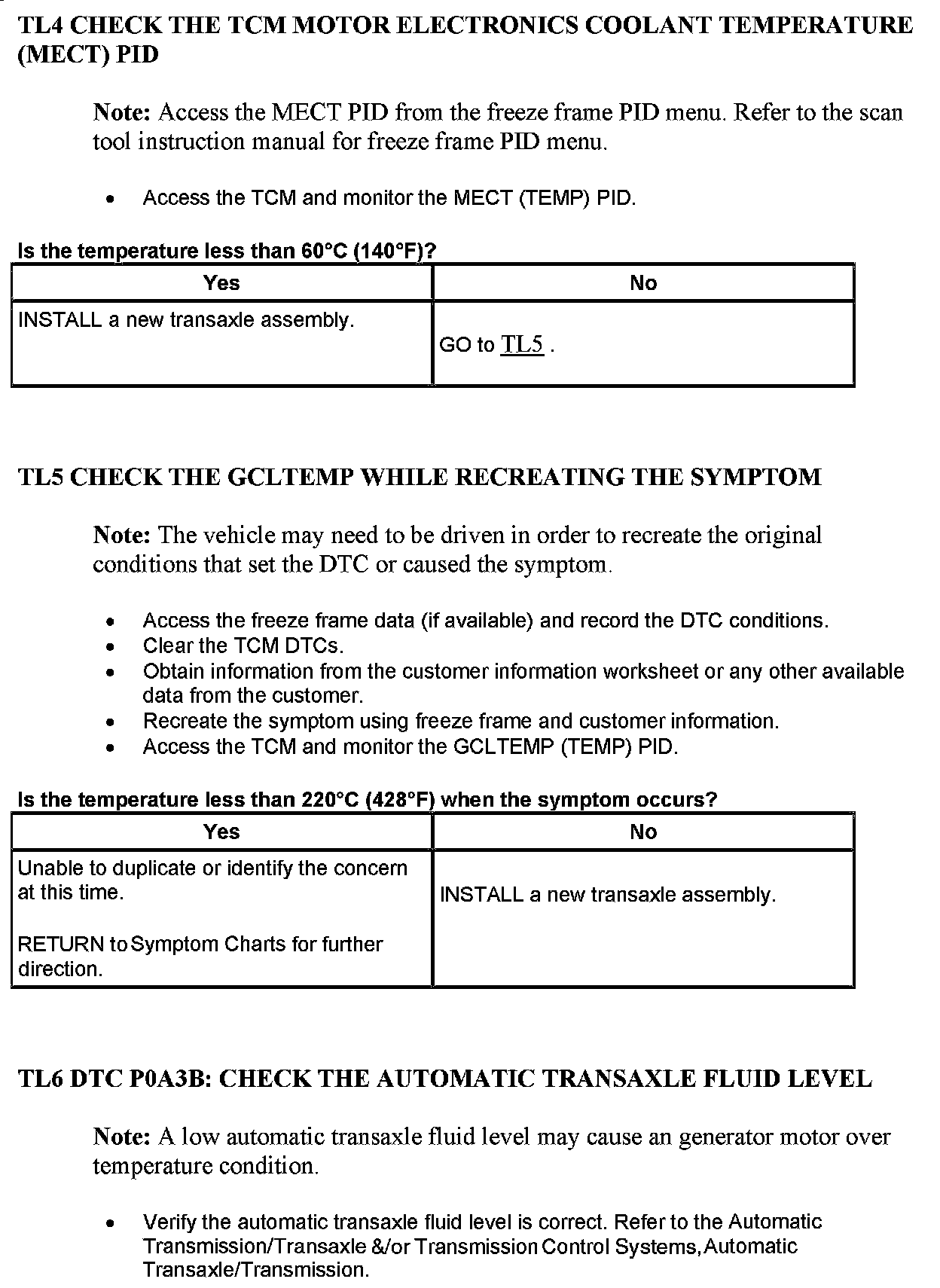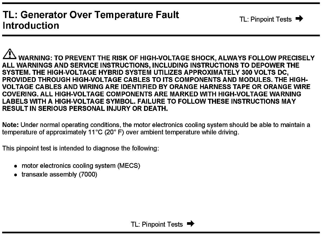 PINPOINT TEST TL: GENERATOR OVER TEMPERATURE FAULT