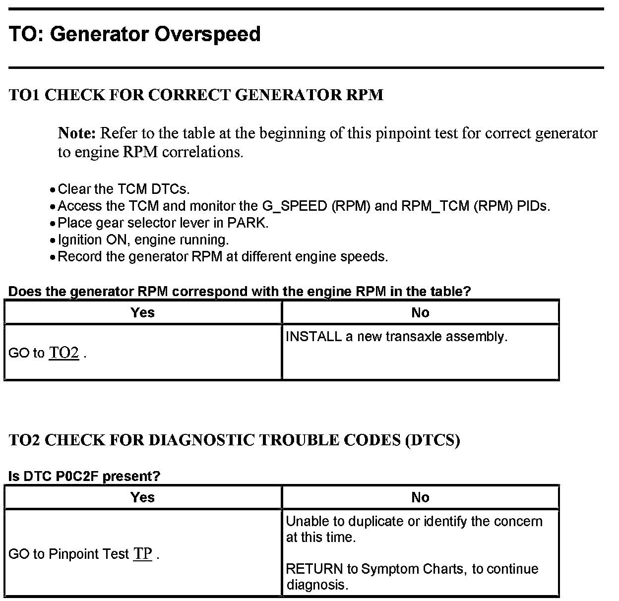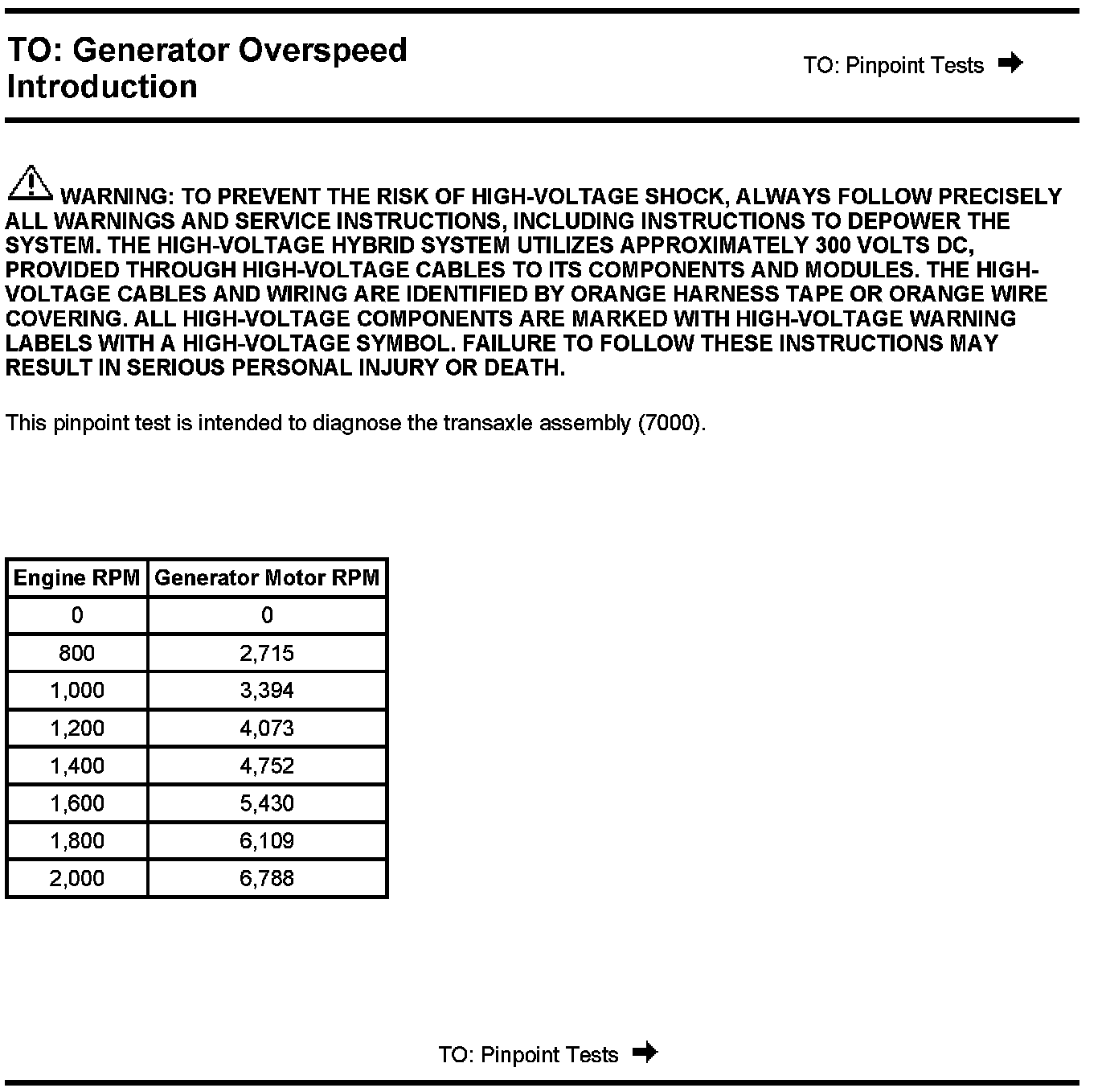 PINPOINT TEST TO: GENERATOR OVERSPEED