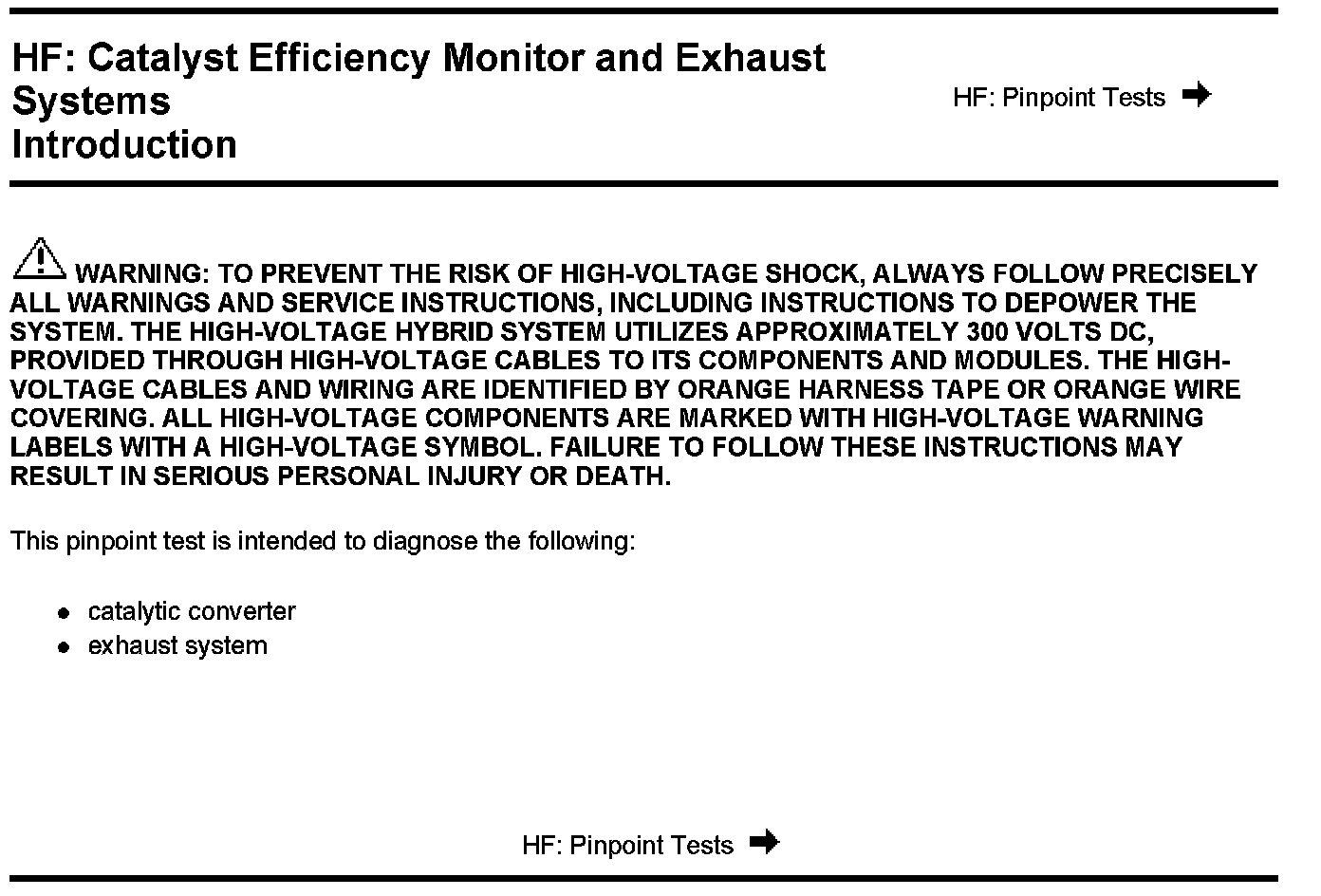 PINPOINT TEST HF: CATALYST EFFICIENCY MONITOR AND EXHAUST SYSTEMS