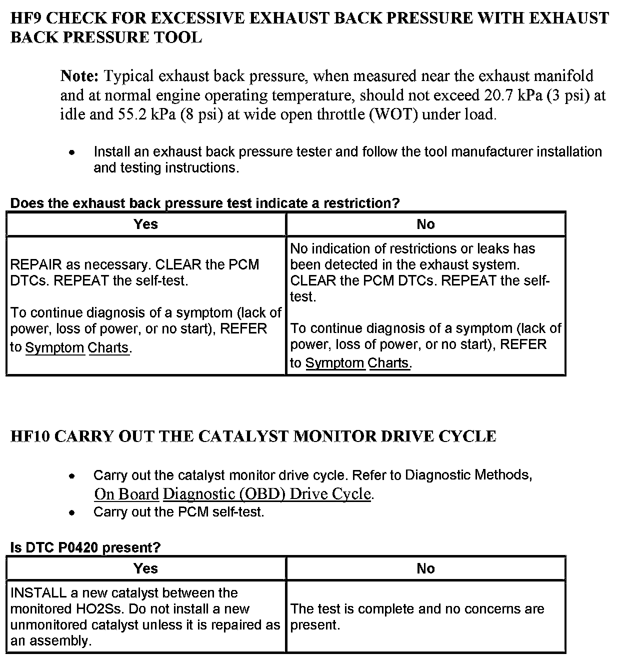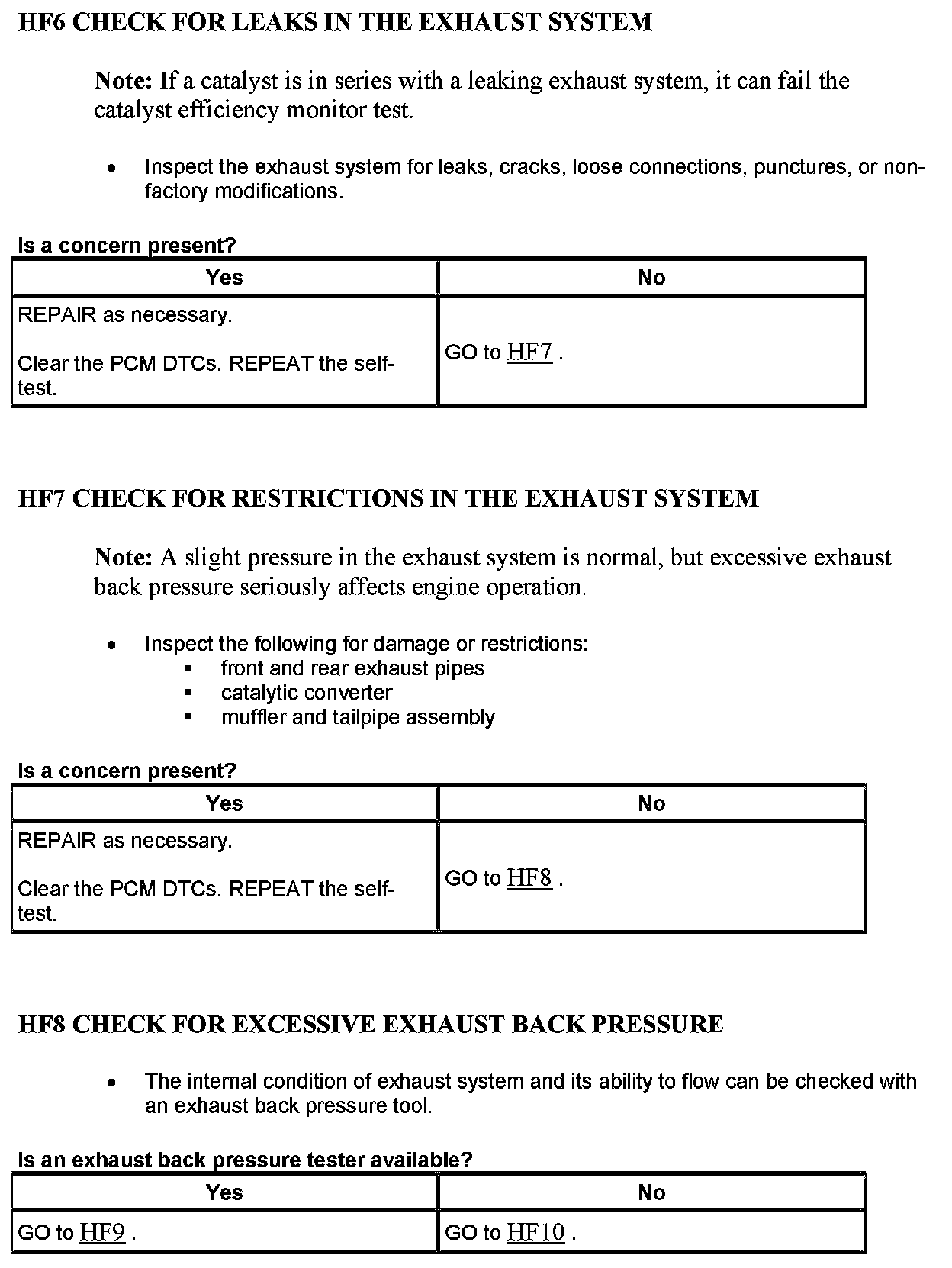 Test HF: Catalyst Efficiency Monitor and Exhaust Systems