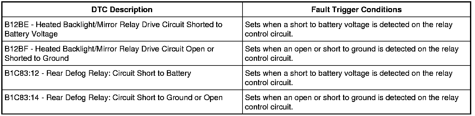 INSTALL a new rear window defrost relay. CLEAR all DTCs. TEST the system for normal operation.