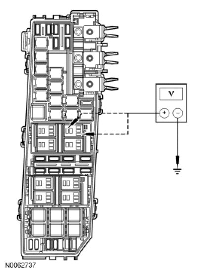 - Measure the voltage between rear window defrost grid C402A-1, circuit CRD06 (BK), harness side and ground.