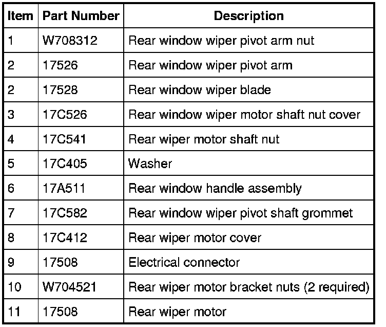 Wiper and Washer System - Exploded View, Rear