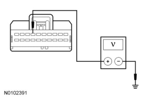 - Measure the voltage between the ILCM C3498-7, circuit CBX07 (GN/RD), harness side and ground.