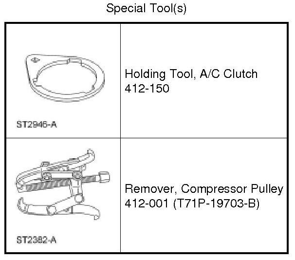 1. Hold the A/C clutch disc and hub with the A/C Clutch Holding Tool.