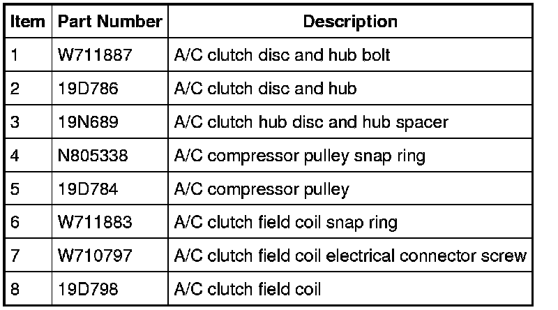 1. Visually inspect the A/C clutch disc and hub, A/C compressor pulley and A/C clutch field coil for damage.