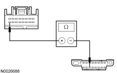 - Measure the resistance between the ACM C240c-15, circuit VDB06 (GY/OG), harness side and the DLC C251-3, circuit VDB06 (GY/OG), harness side.