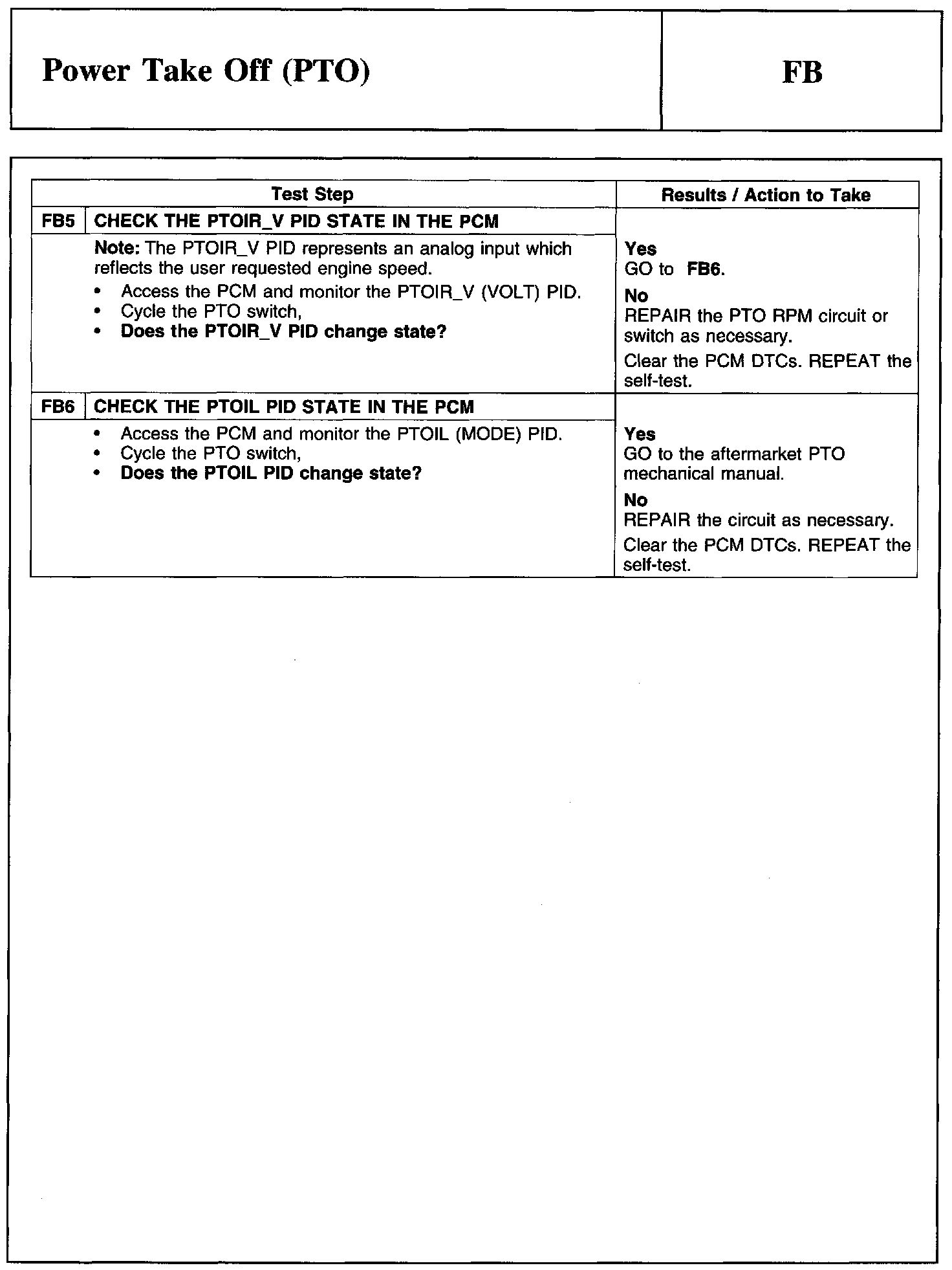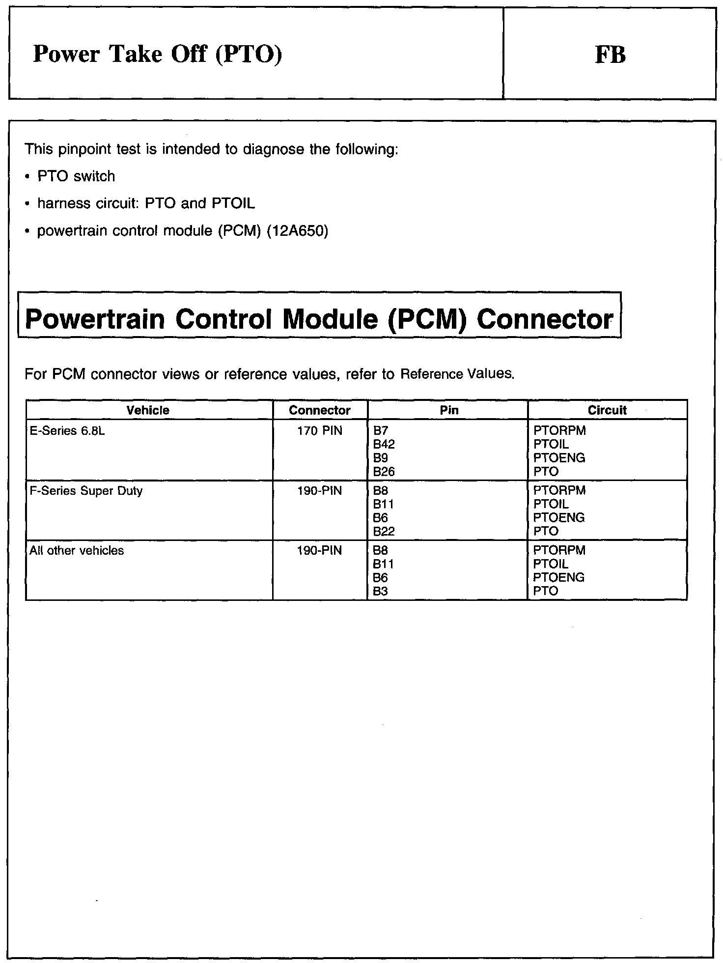 PINPOINT TEST FB: POWER TAKE OFF (PTO)