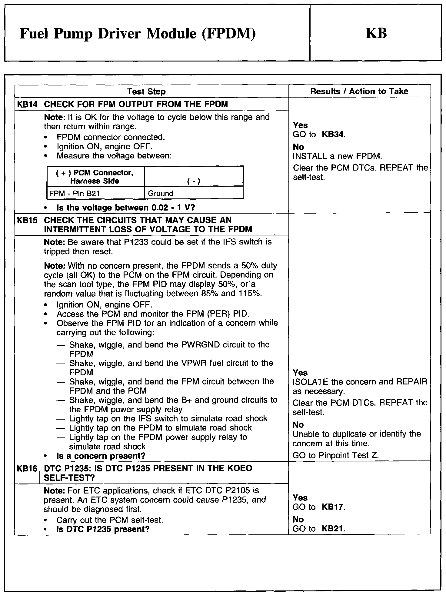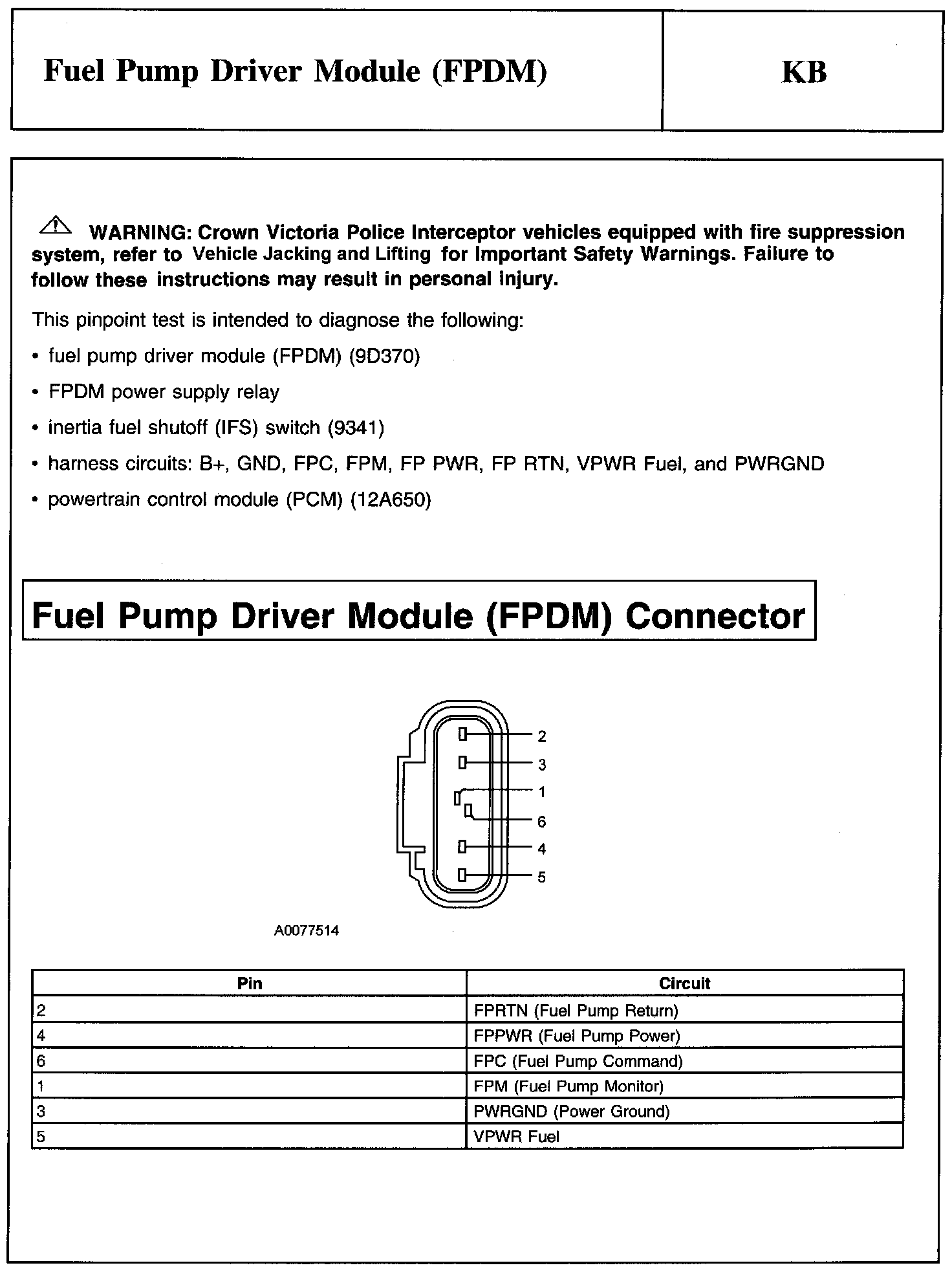 PINPOINT TEST KB: FUEL PUMP DRIVER MODULE (FPDM)