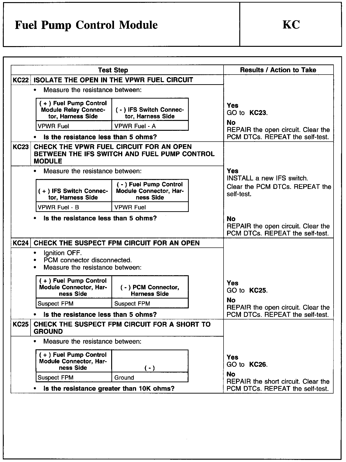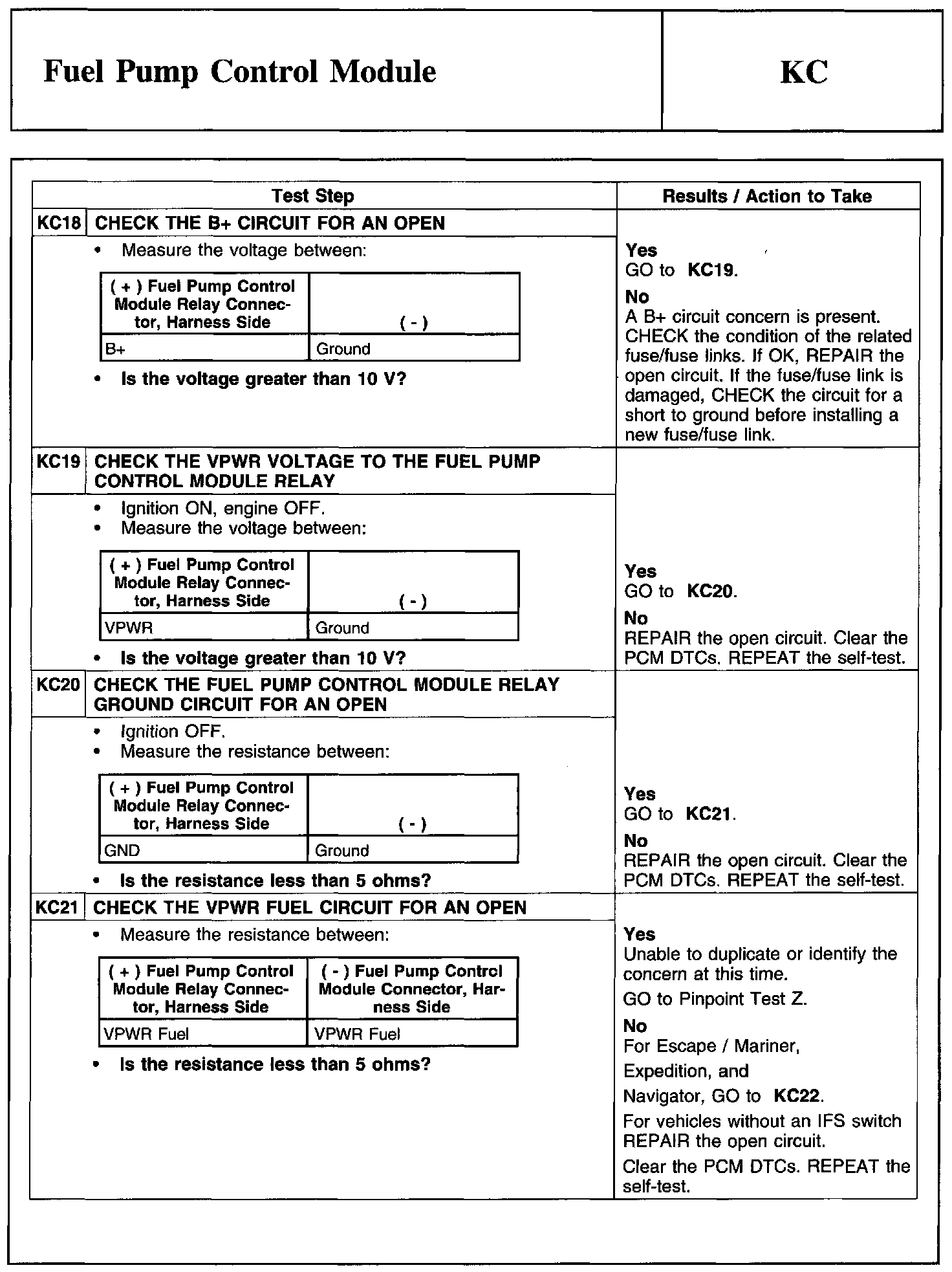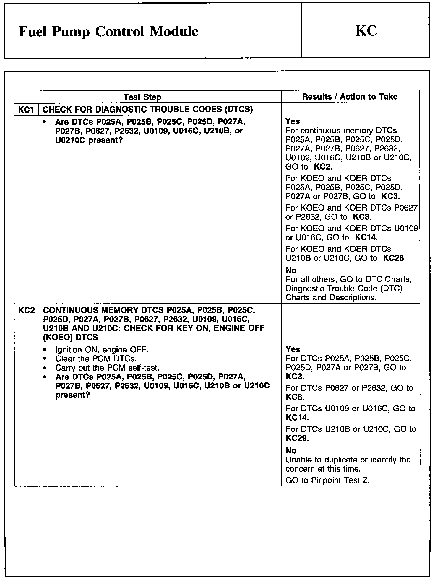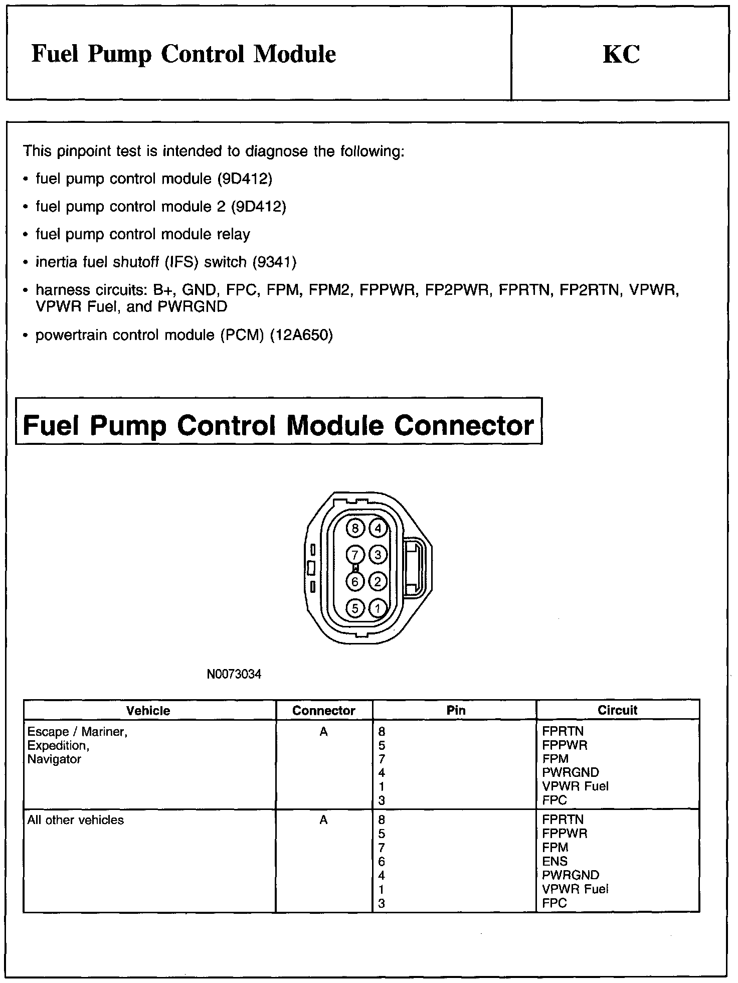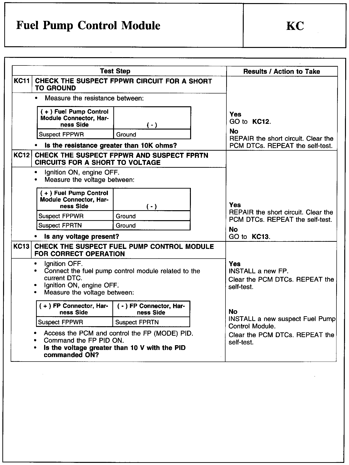 Test KC: Fuel Pump Control Module