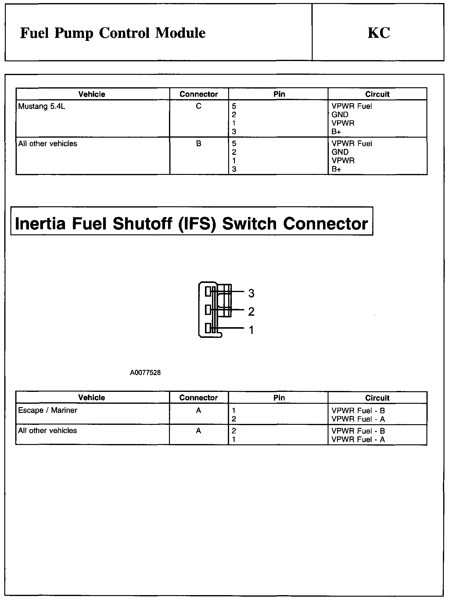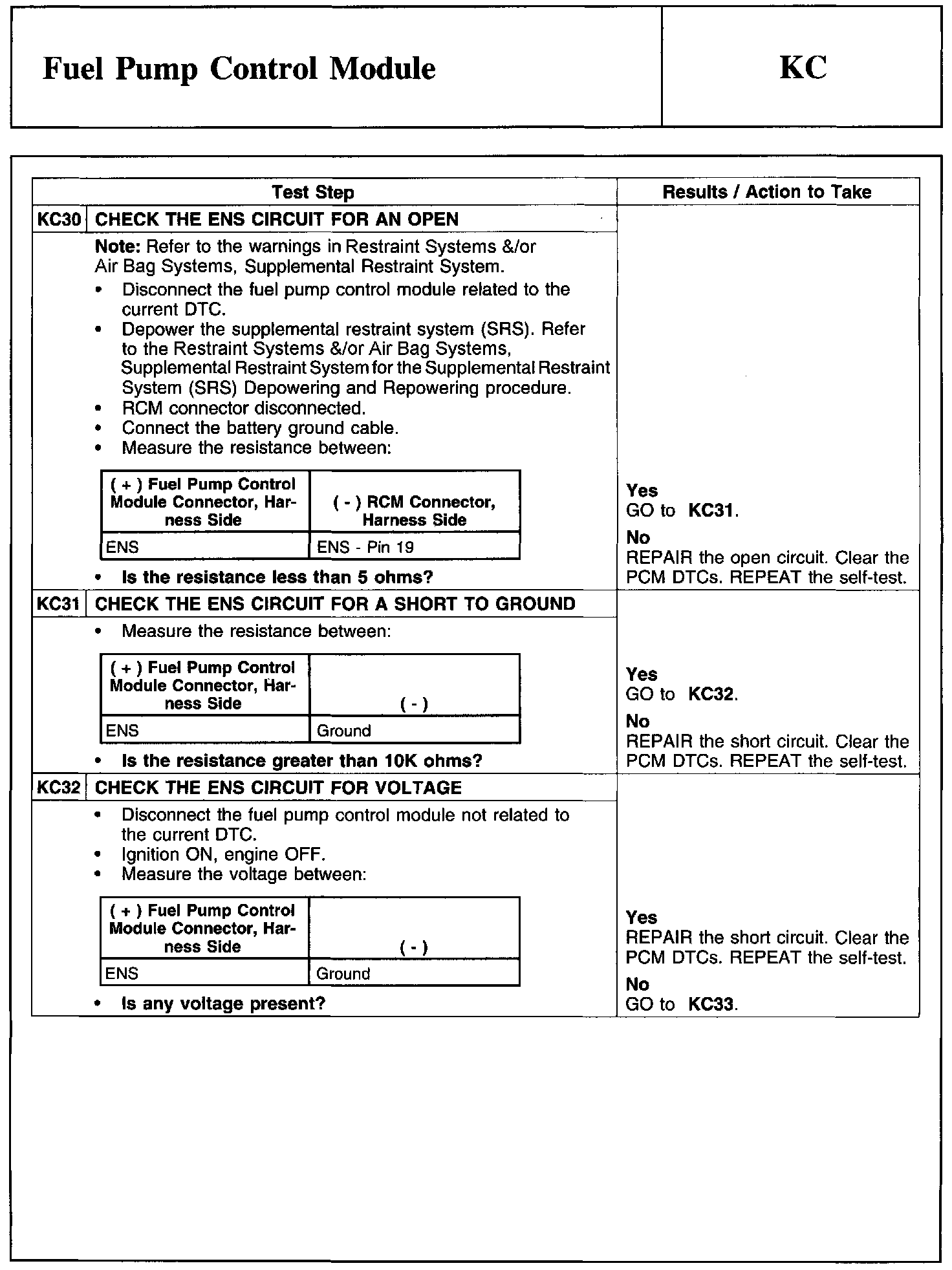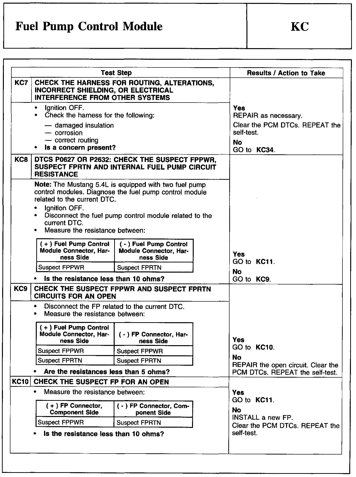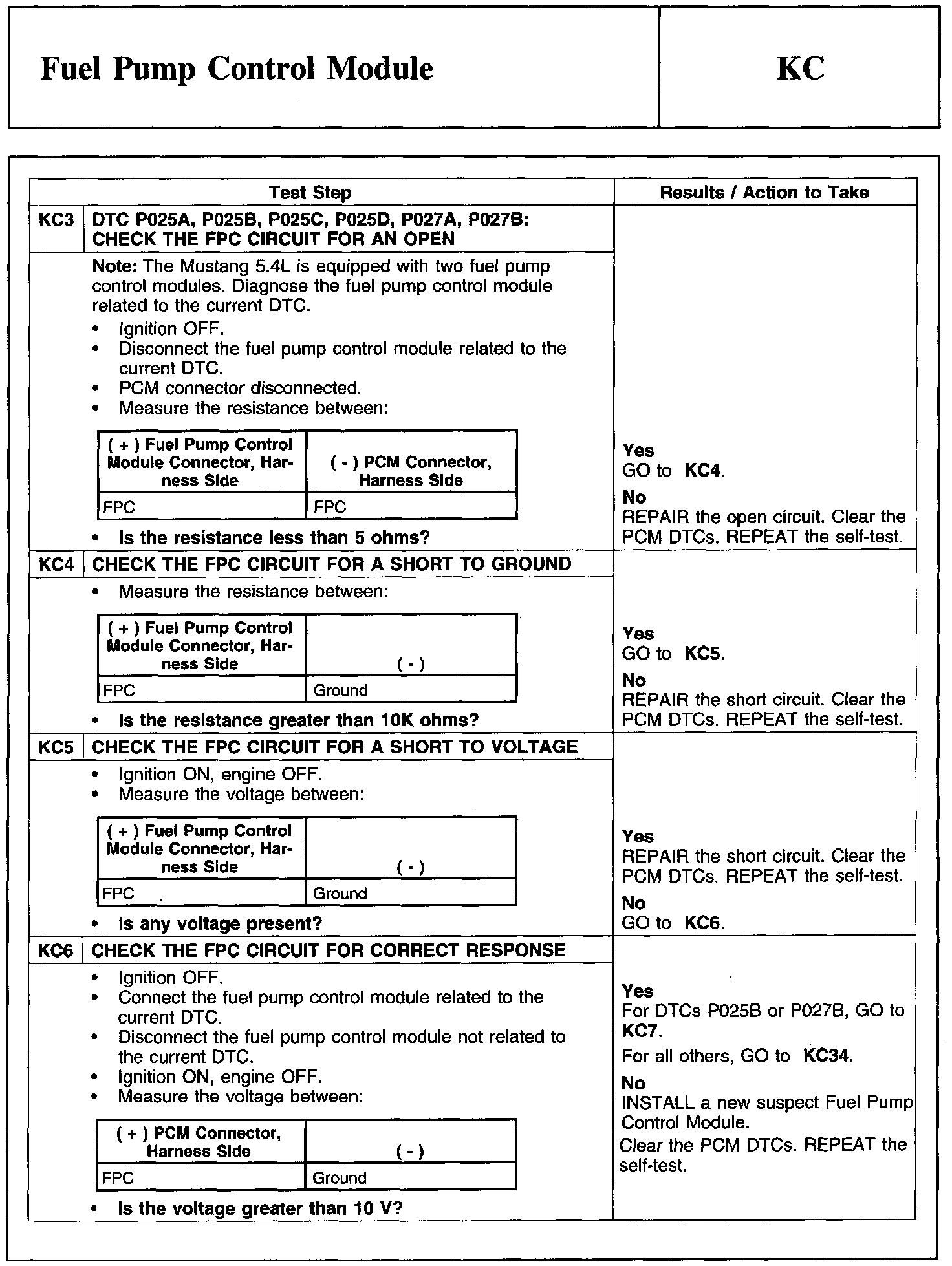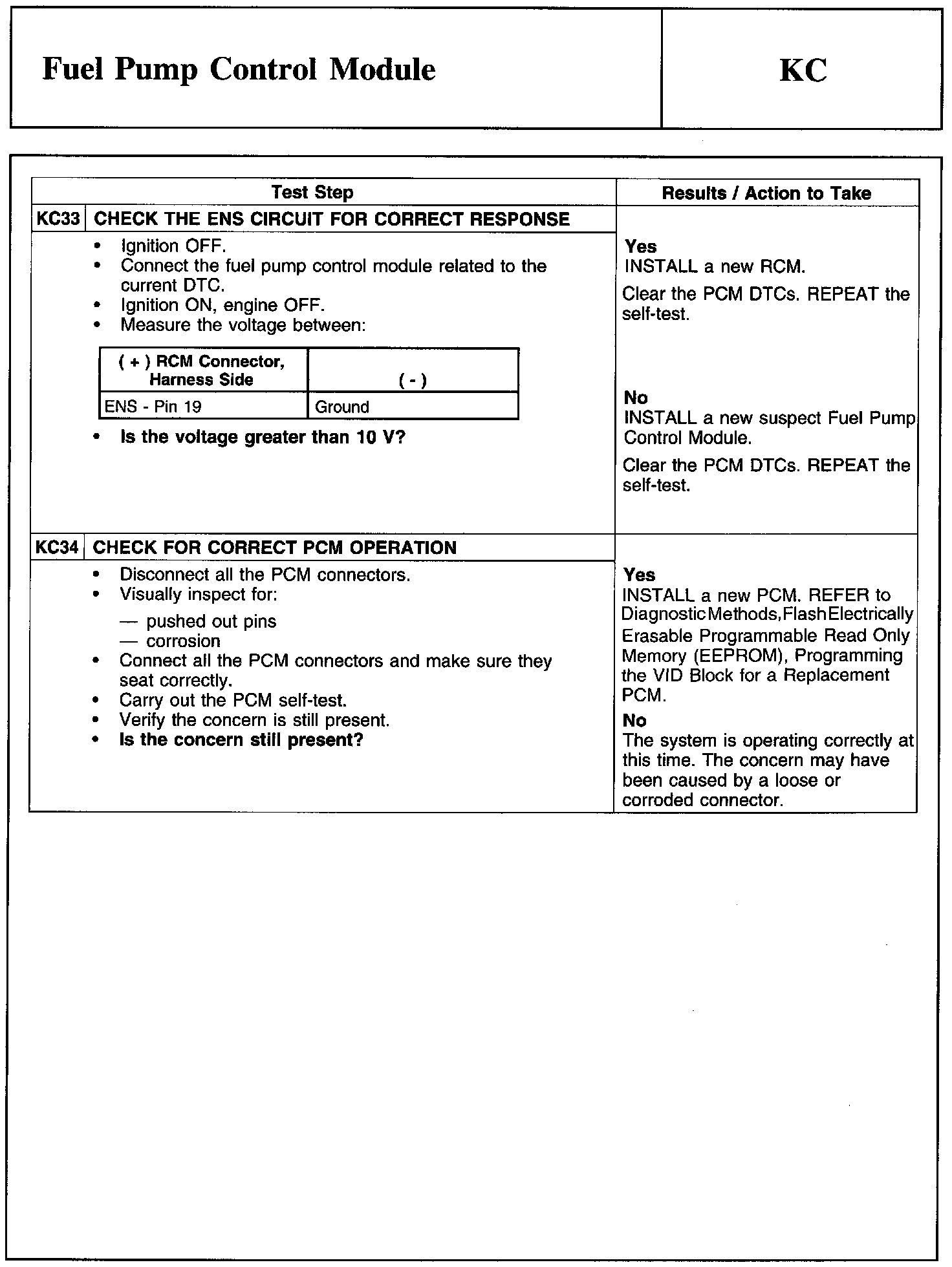 Test KC: Fuel Pump Control Module