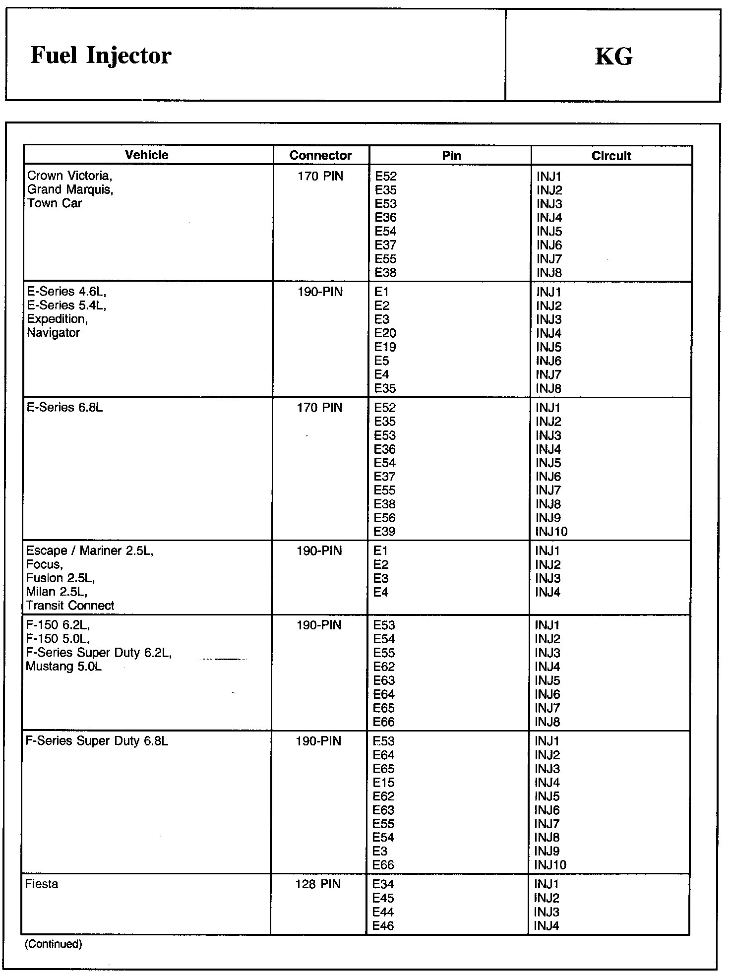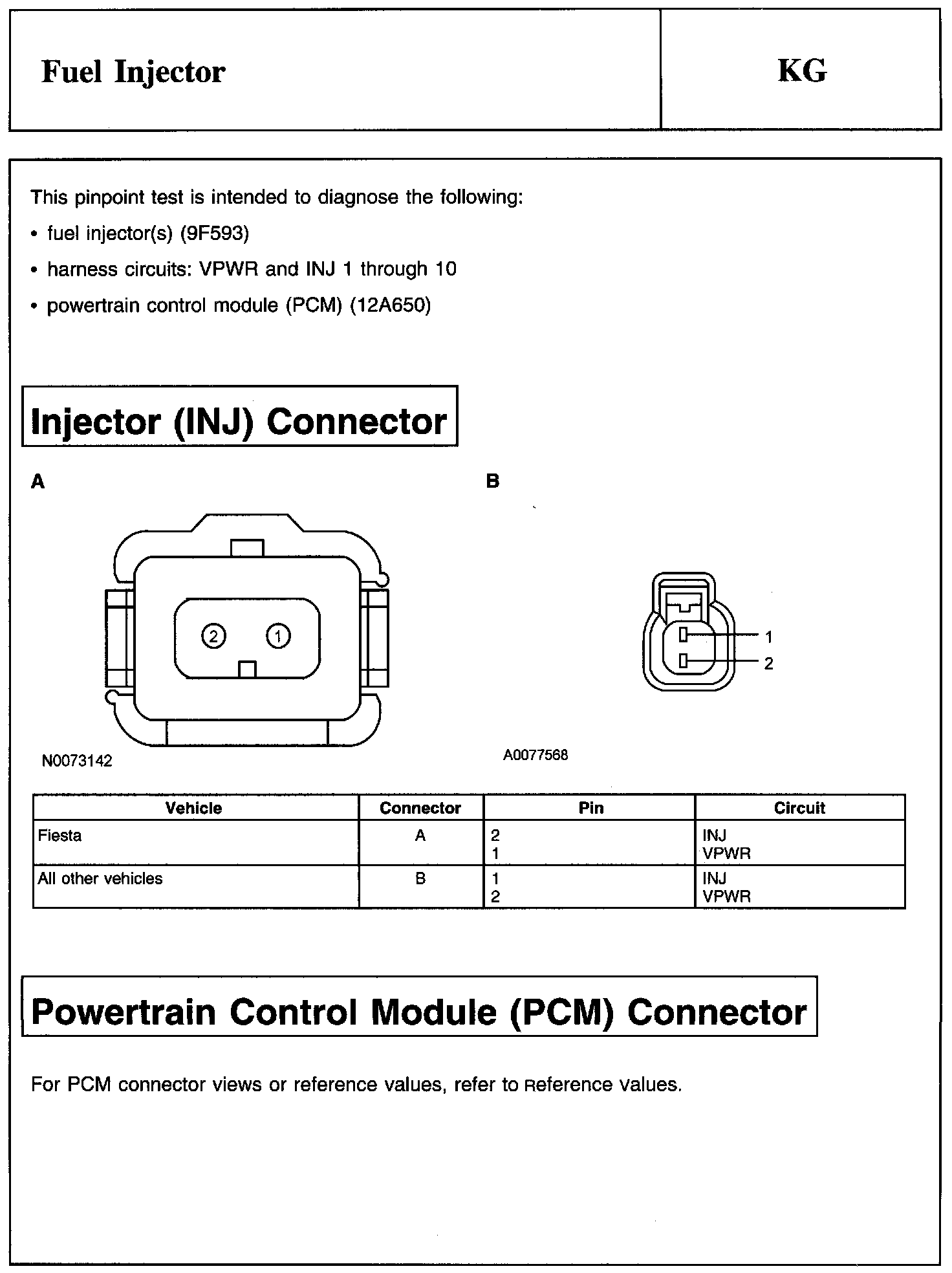 Injector (INJ) Connector And Powertrain Control Module (PCM) Connector: