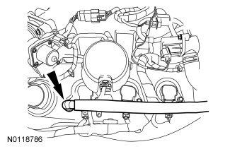 1. Disconnect the crankcase ventilation tube-to-valve cover fitting quick connect coupling. For additional information, refer to Fuel System - General Information Service and Repair.