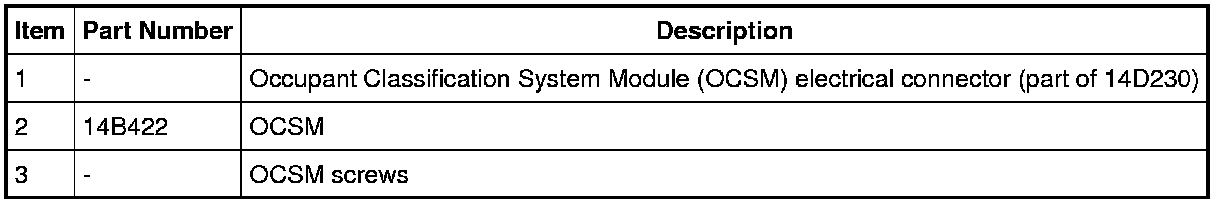 6. Carry out the Occupant Classification System (OCS) System Reset procedure. For additional information, refer to Occupant Classification Sensor (OCS) System Reset Service and Repair in the General Procedures information.