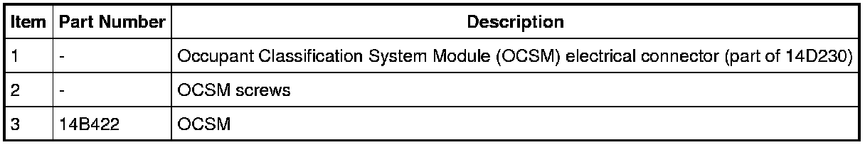 6. Carry out the Occupant Classification System (OCS) System Reset procedure. For additional information, refer to Occupant Classification Sensor (OCS) System Reset Service and Repair in the General Procedures information.