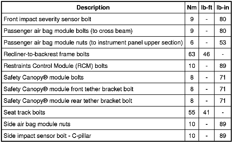 Torque Specifications