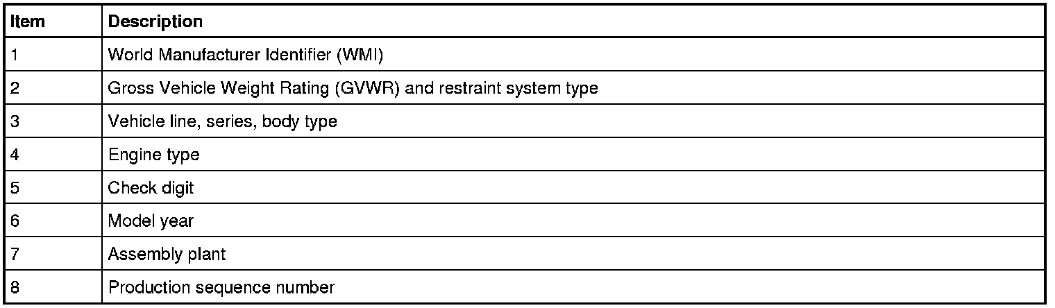 VIN (Vehicle Identification Number) positions 5 through 7 indicate the vehicle line, series and body type.