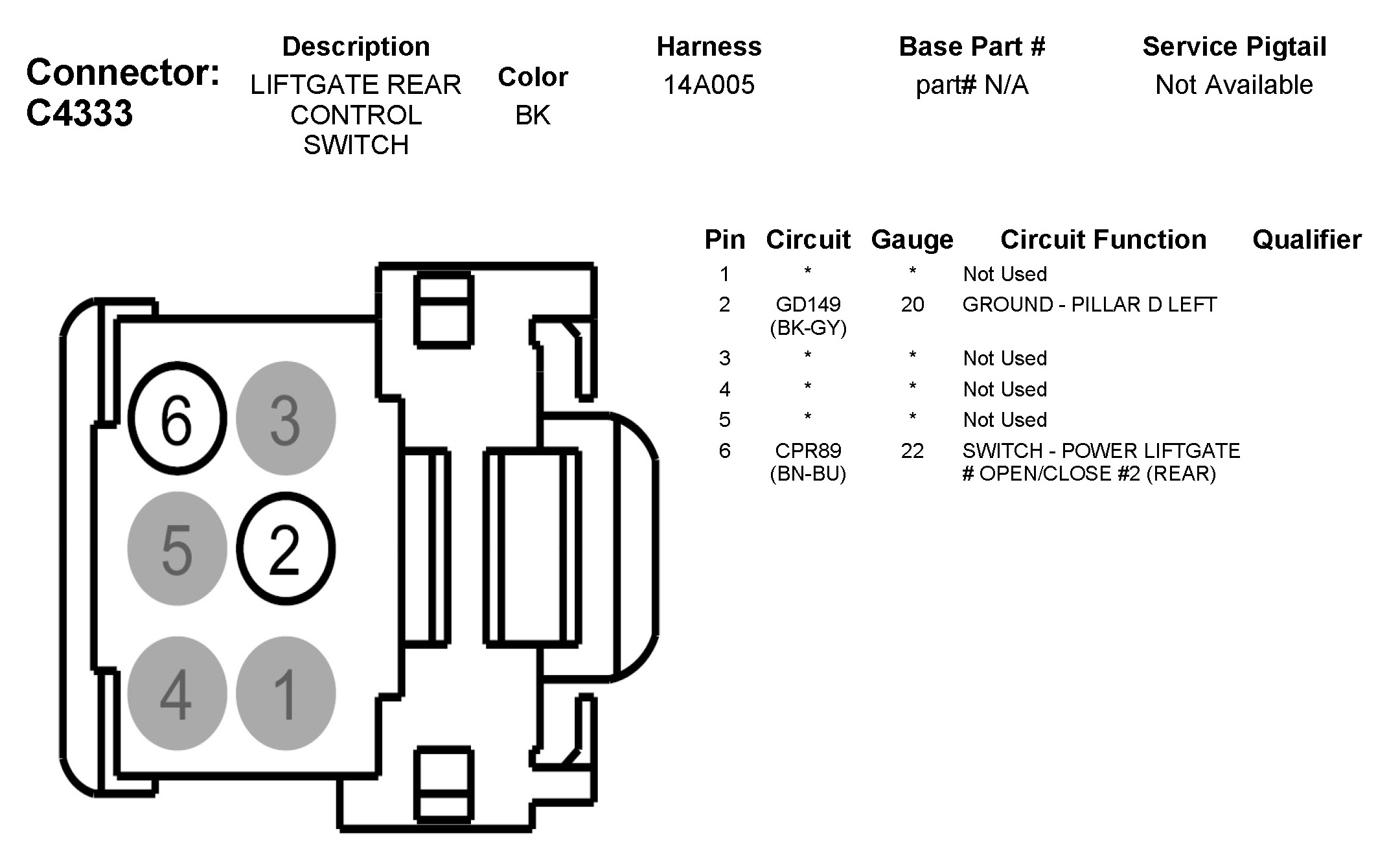 C4333 Liftgate Rear Control Switch