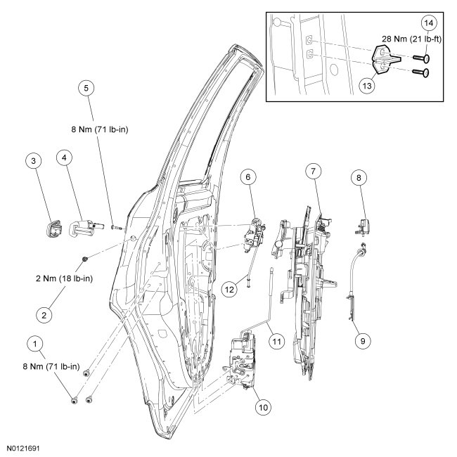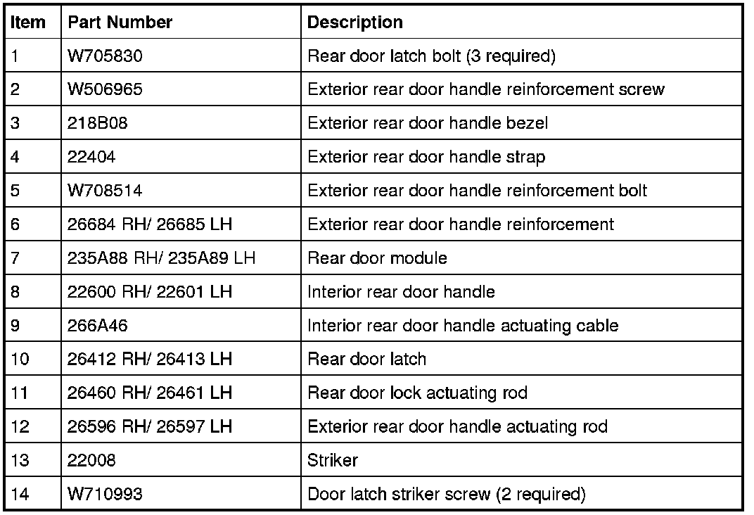 Rear Door Handles, Locks and Latches - Exploded View