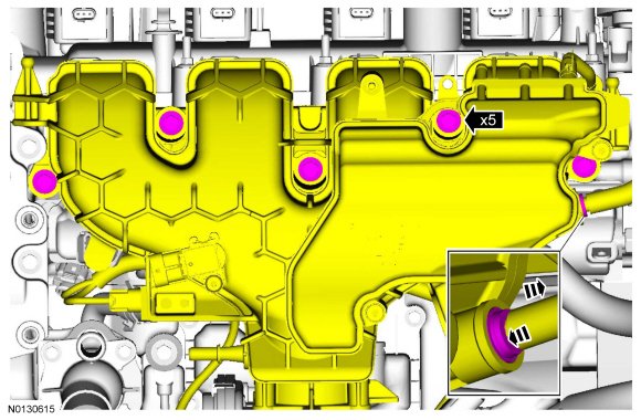 NOTICE: If the engine is repaired or replaced because of upper engine failure, typically including valve or piston damage, check the intake manifold for metal debris. If metal debris is found, install a new intake manifold. Failure to follow these instructions can result in engine damage.
