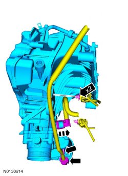 - Disconnect the crankcase ventilation oil separator tube and remove the intake manifold.