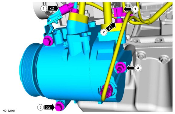 NOTICE: If installing a new Air Conditioning (A/C) compressor due to an internal failure of the old unit, either a flushing procedure or system filtering procedure must be carried out to remove contamination from the A/C system. Failure to remove contamination from the A/C system, if present, will result in poor A/C performance and/or damage to the new A/C compressor and other components.