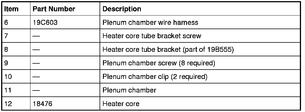 NOTE: If a heater core leak is suspected, the heater core must be pressure leak tested before it is removed from the vehicle.