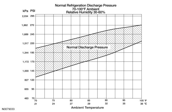 8. Determine if the discharge pressure falls within the normal operating limits using the Normal Refrigeration Discharge Pressure chart.