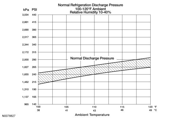 5. Confirm the compressor clutch is engaged and the engine cooling fan(s) are operating or engaged. Allow the vehicle to idle until the suction (low-side) and discharge (high-side) pressures are stable or fluctuate in a range that repeats.