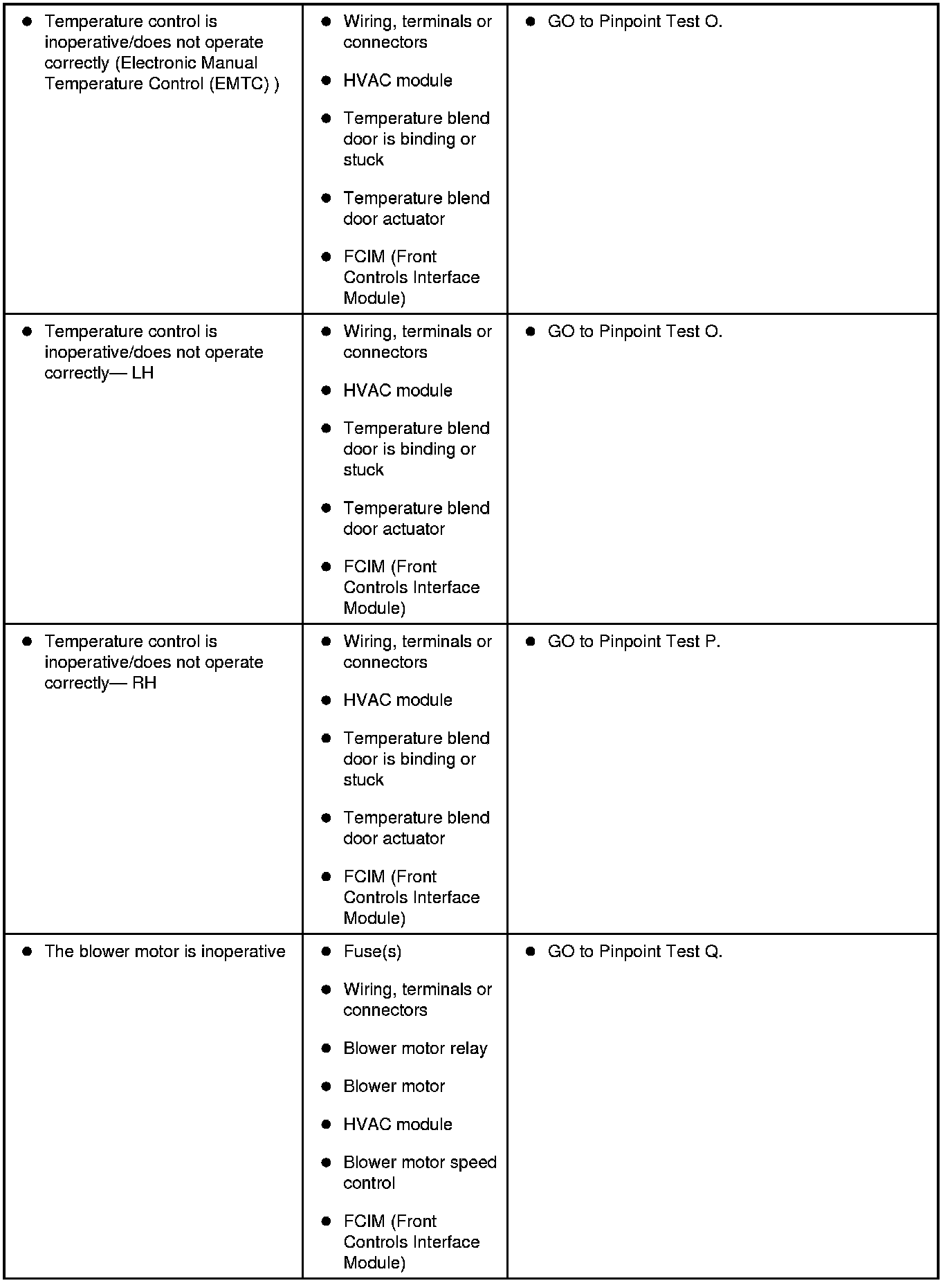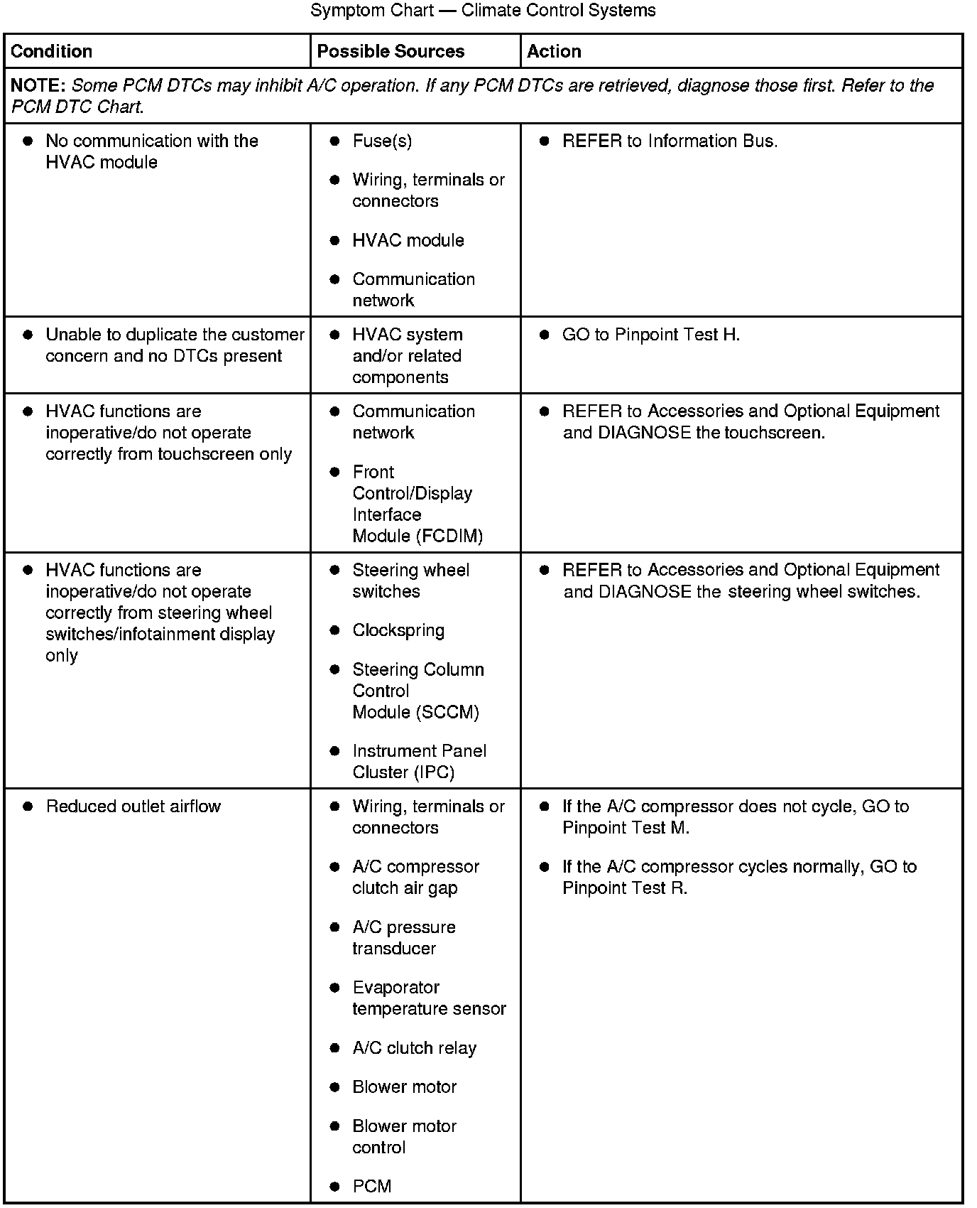 Symptom Chart - Climate Control Systems