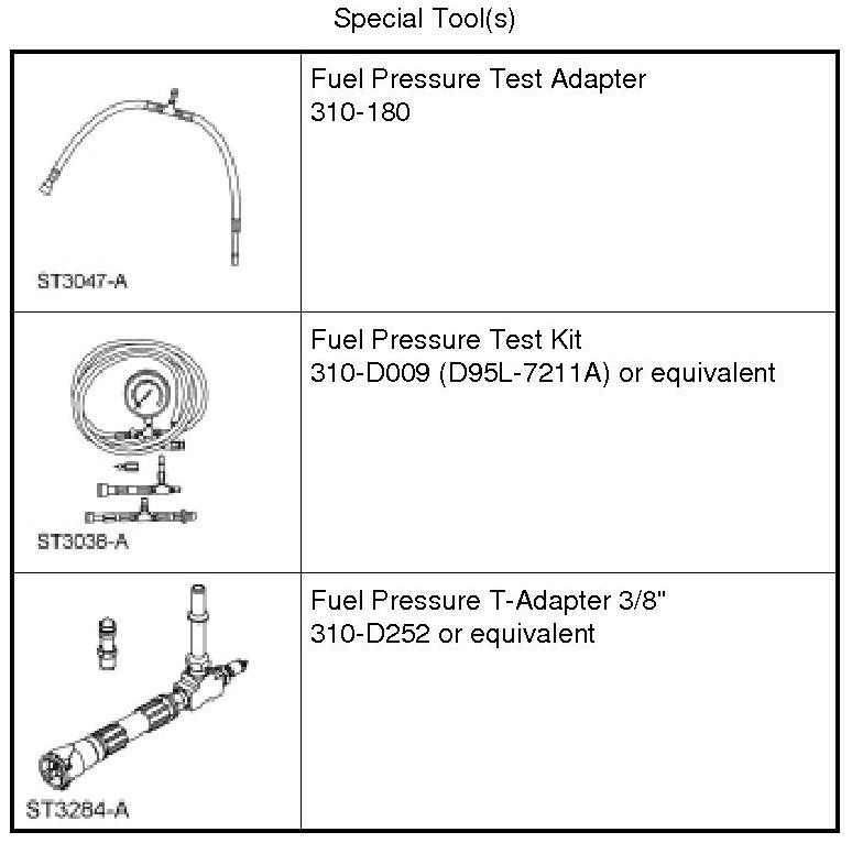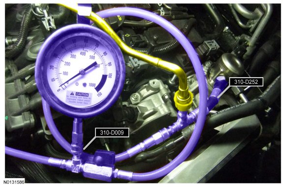 Test the fuel system pressure to make sure it is within the specified range. For additional information, refer to Specifications.