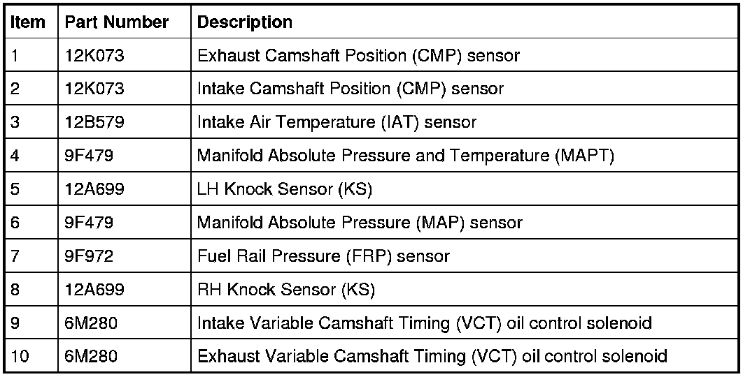 - Variable Camshaft Timing (VCT) oil control solenoid.